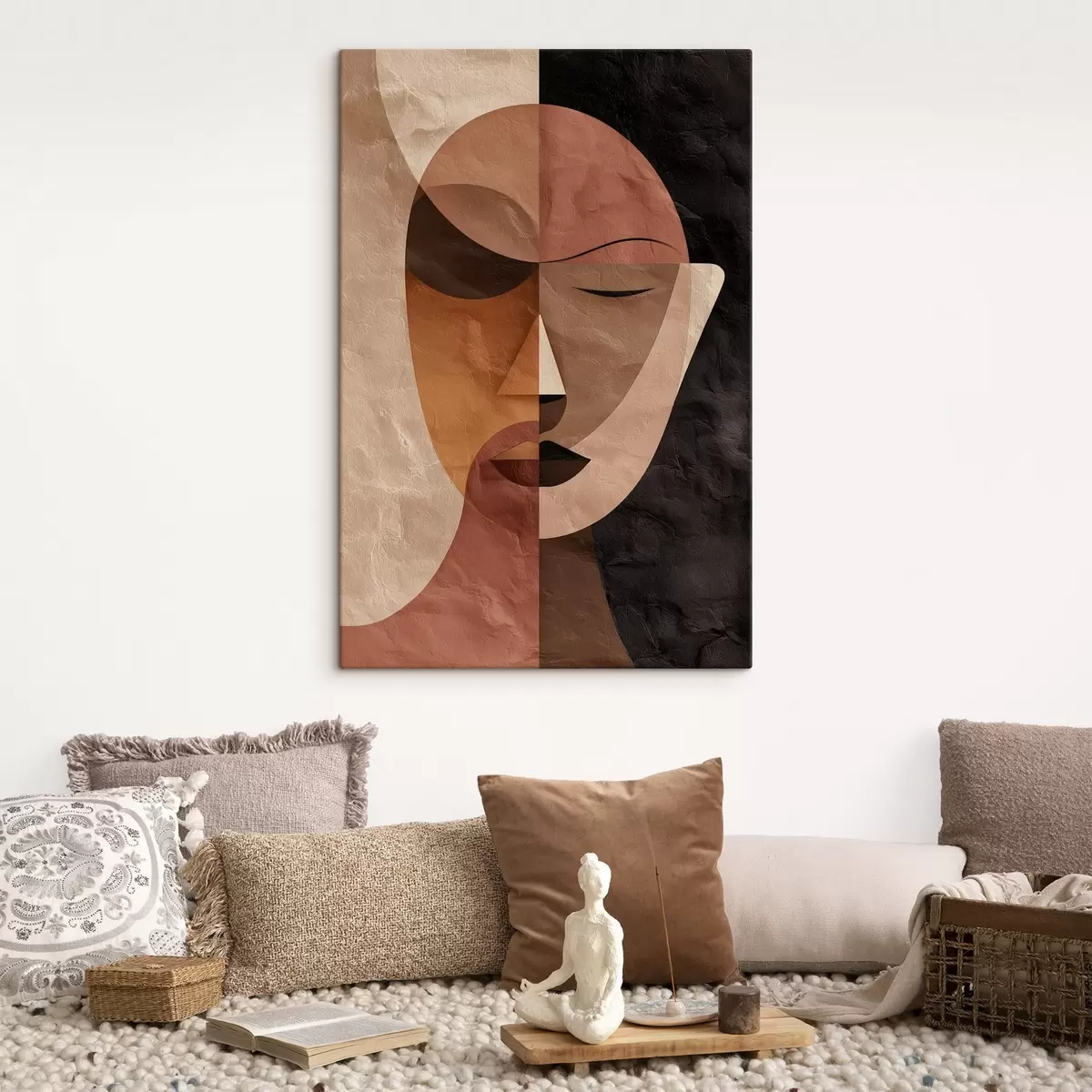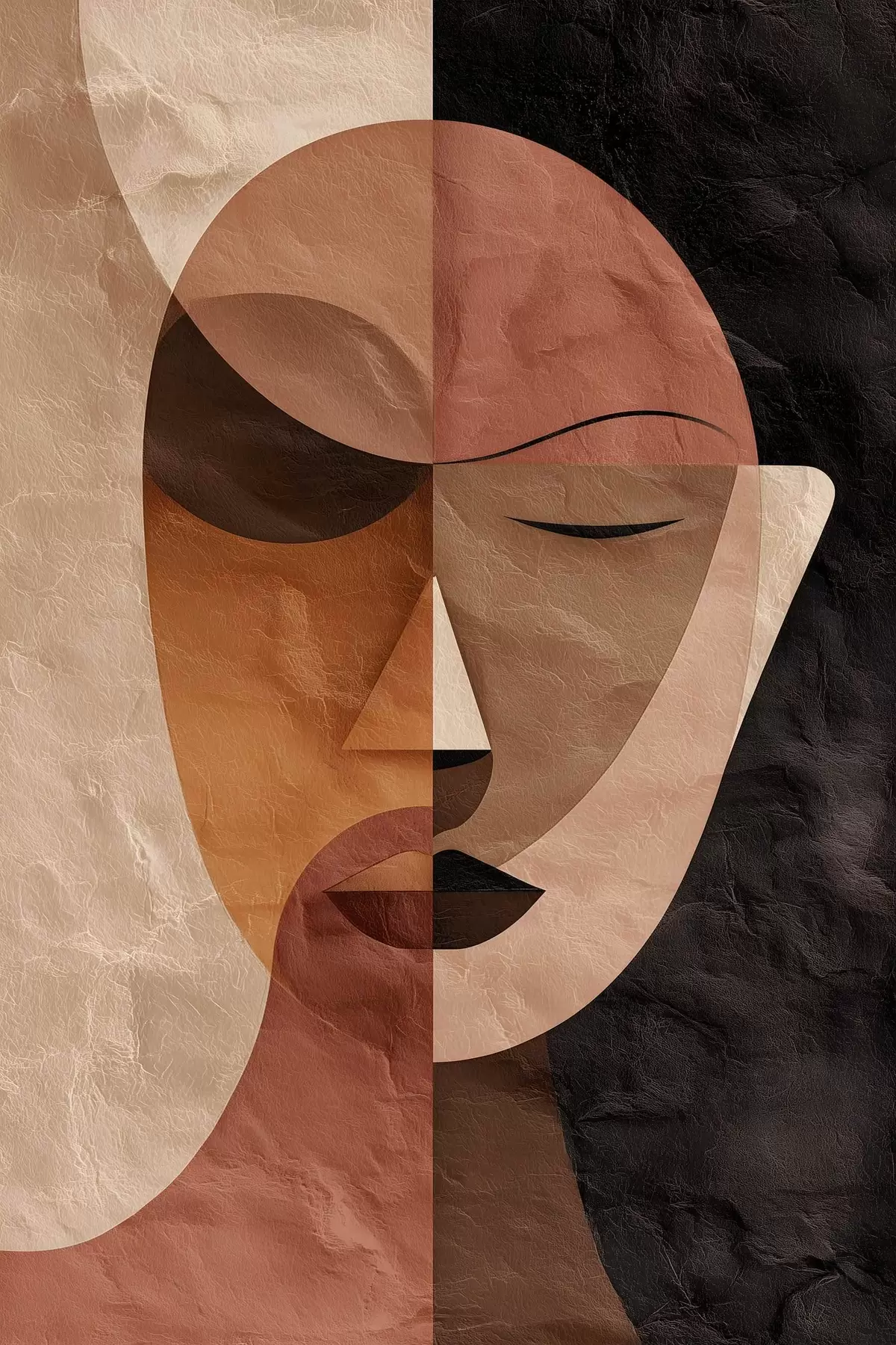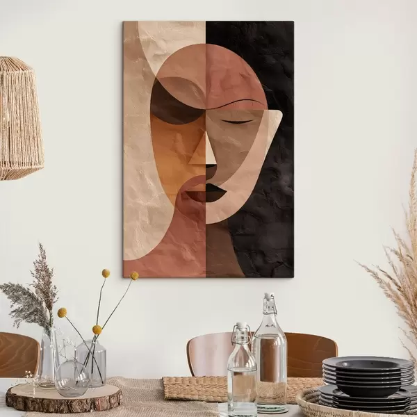 Schilderijen een abstract gezicht in koffietinten s48777