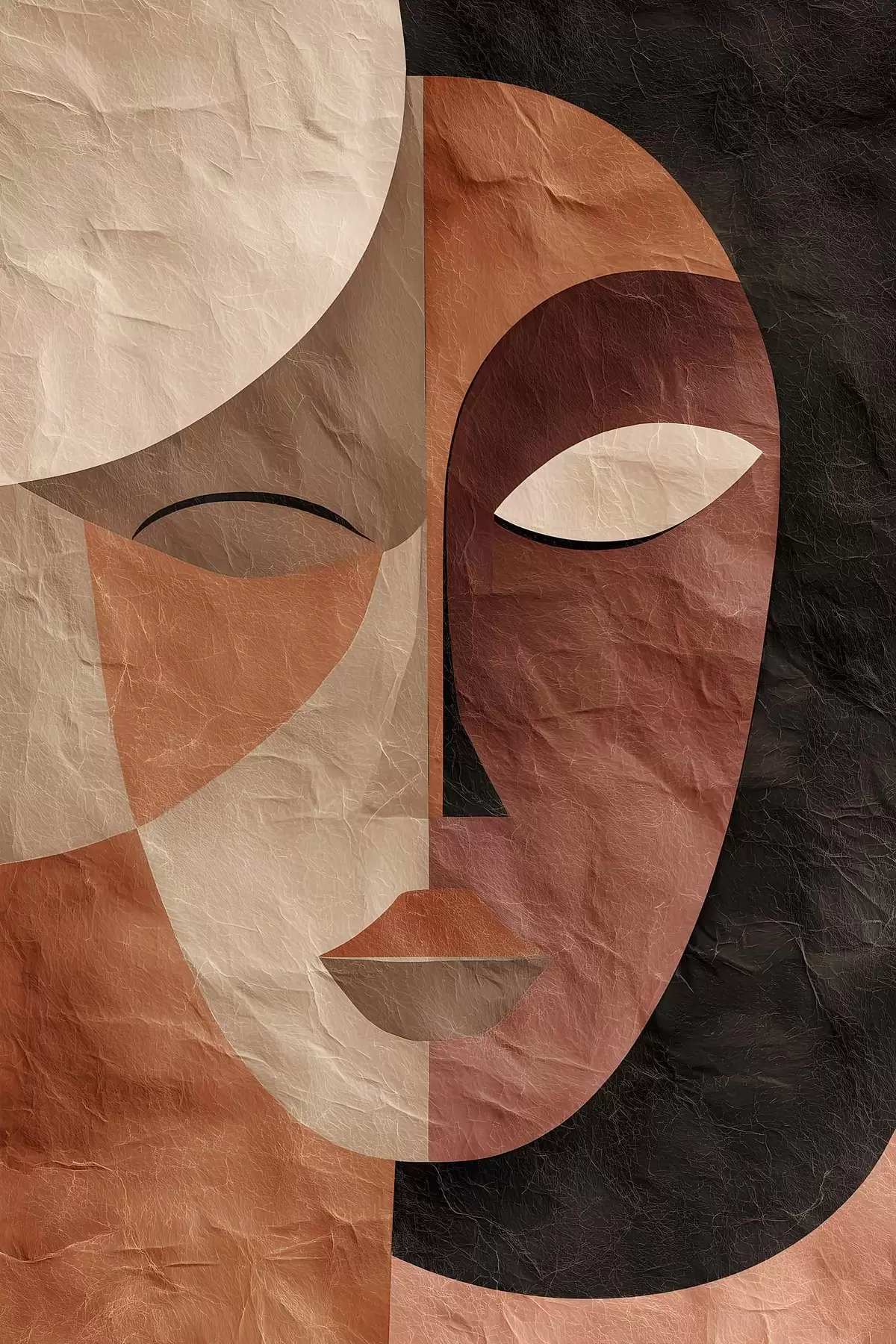 Schilderij een abstract gezicht in koffietinten Art. s48778