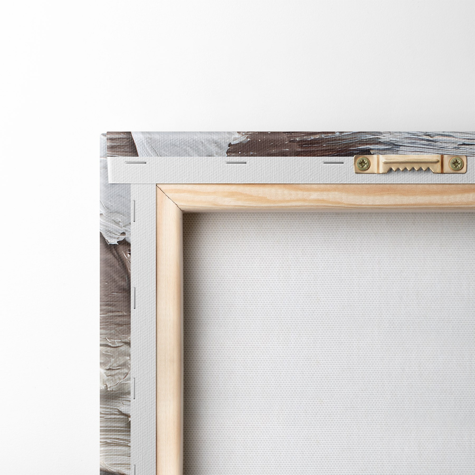Het schilderij kan direct na ontvangst worden opgehangen. Het schilderij wordt opgespannen op een 2 cm breed houten spieraam.