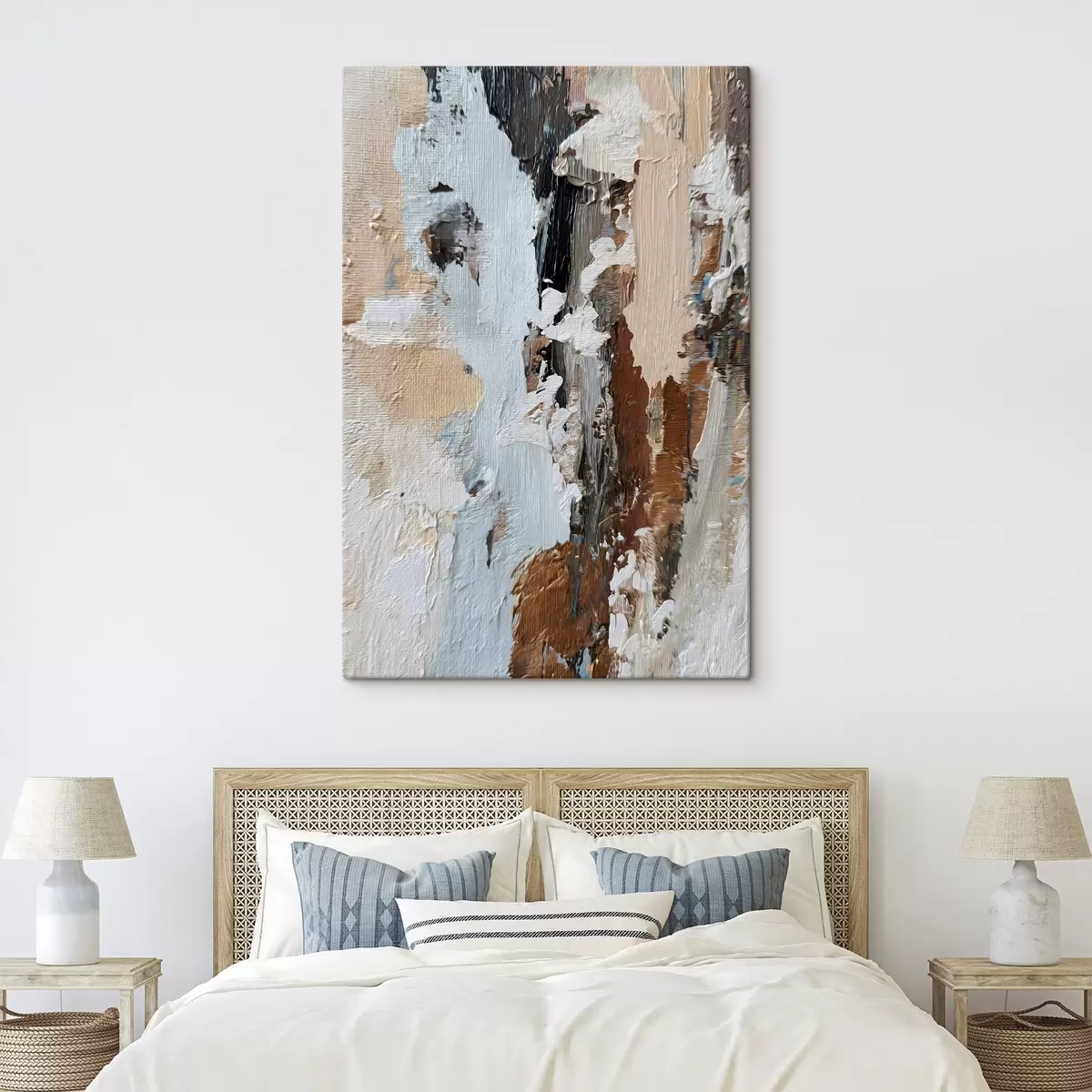 Het schilderij kan direct na ontvangst worden opgehangen. Het schilderij wordt opgespannen op een 2 cm breed houten spieraam.