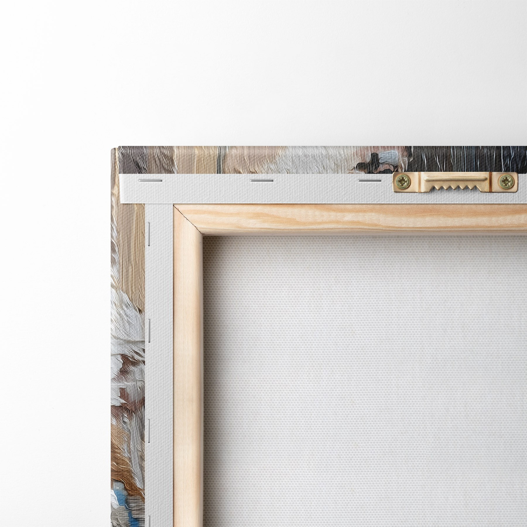 Om het doek op te spannen op spielatten zonder de afbeelding te beschadigen, gebruiken we gespiegeld beeld.