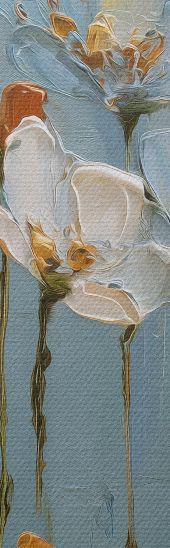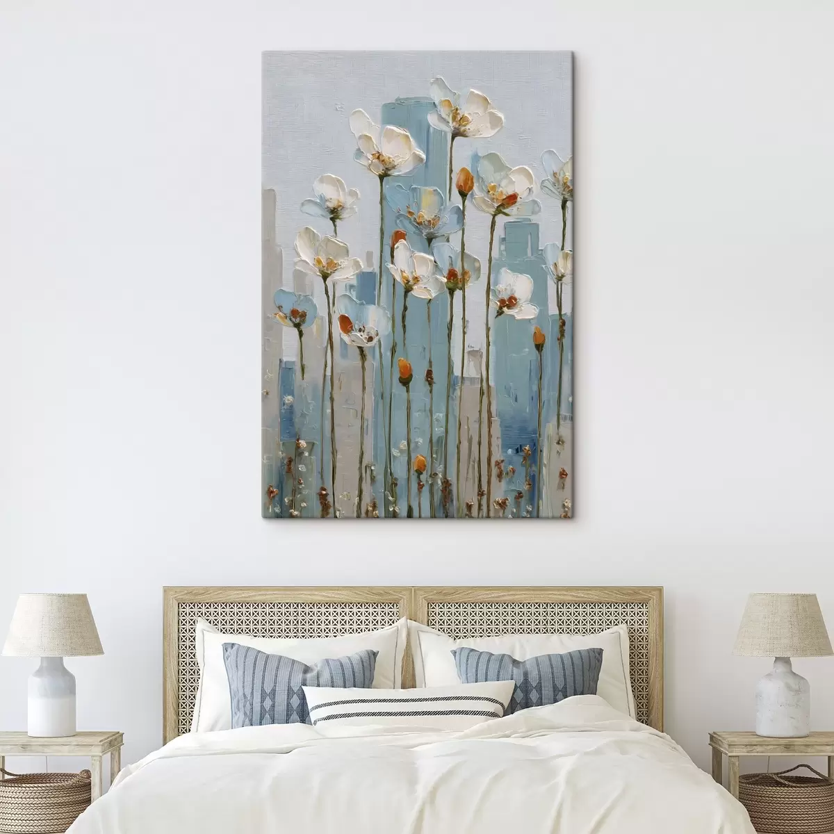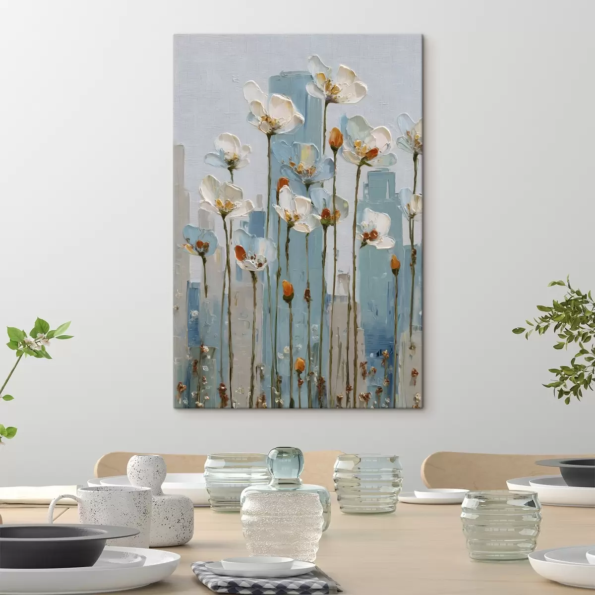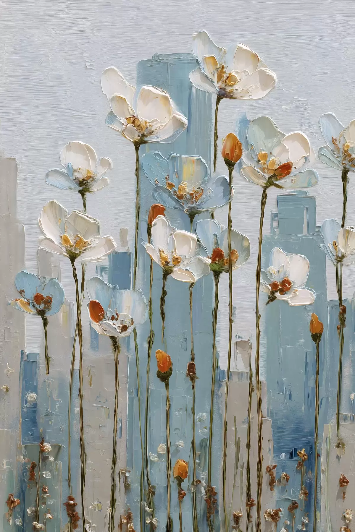 Schilderij bloemen tegen een stedelijke achtergrond, in de stijl van een olieverfschilderij Art. s48785