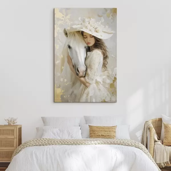 Schilderijen een meisje met een wit paard, geschilderd in olieverfstijl s48790