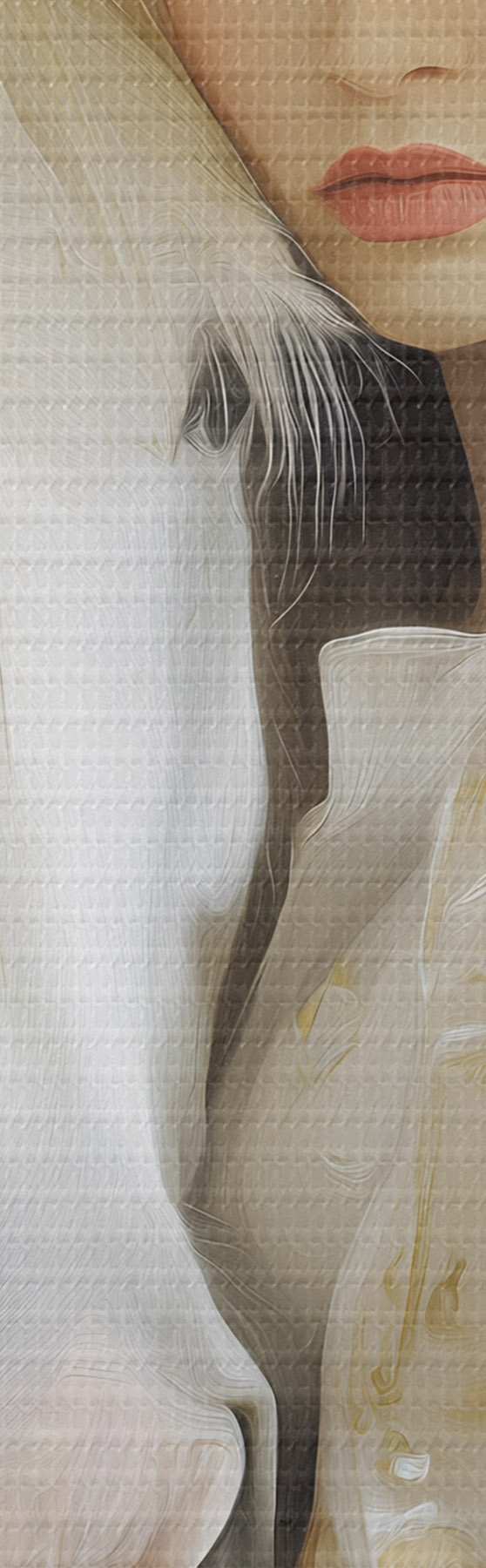 Schilderij een meisje met een wit paard, geschilderd in olieverfstijl Art. s48790