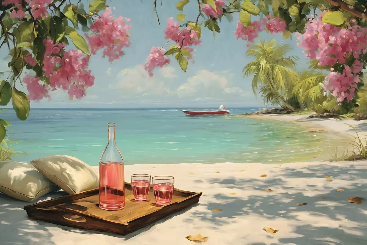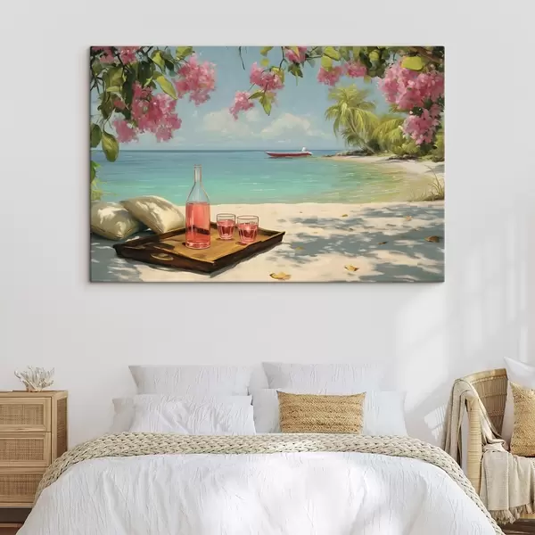 Schilderij een azuurblauw strand en sangria Art. s48793