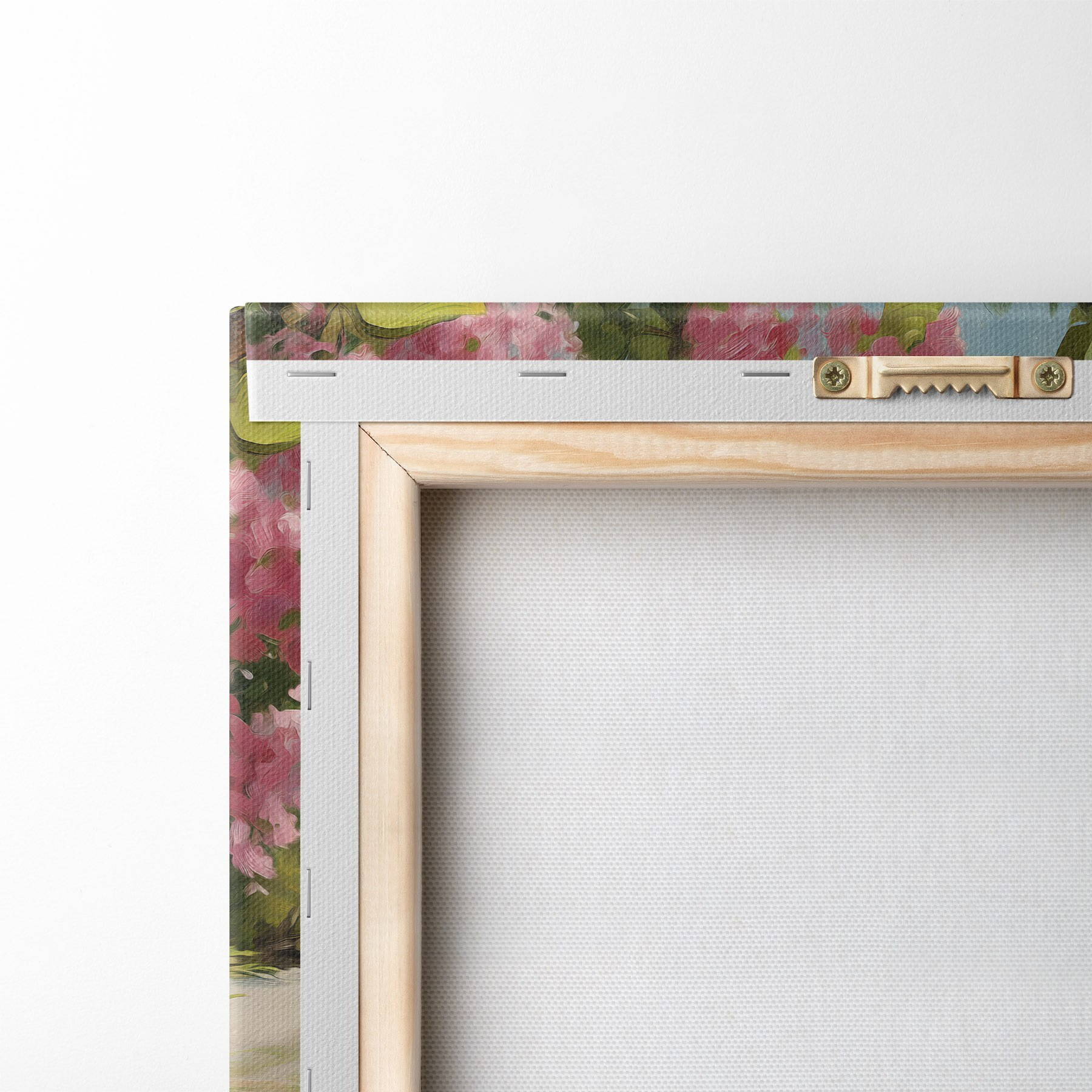 Om het doek op te spannen op spielatten zonder de afbeelding te beschadigen, gebruiken we gespiegeld beeld.