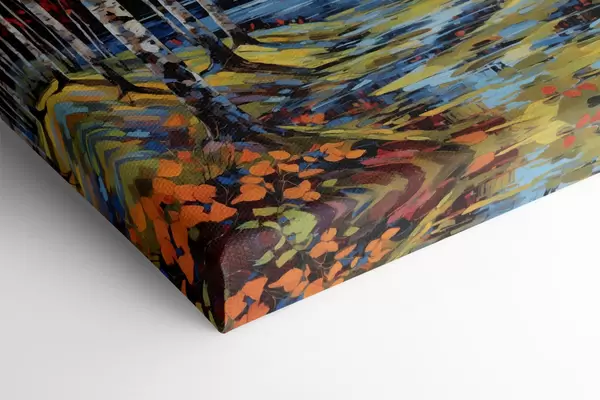 Schilderij Impressionistisch herfstlandschap met berkenbos en rivier Art. s48809