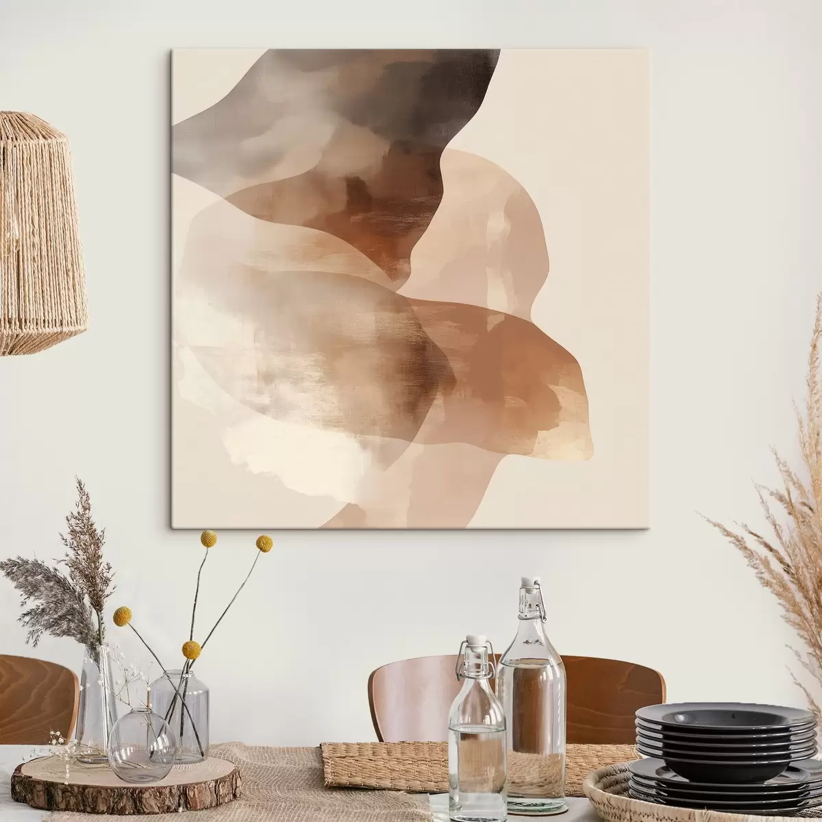 Schilderij Abstracte compositie in warme bruin-beige tinten Art. s48835