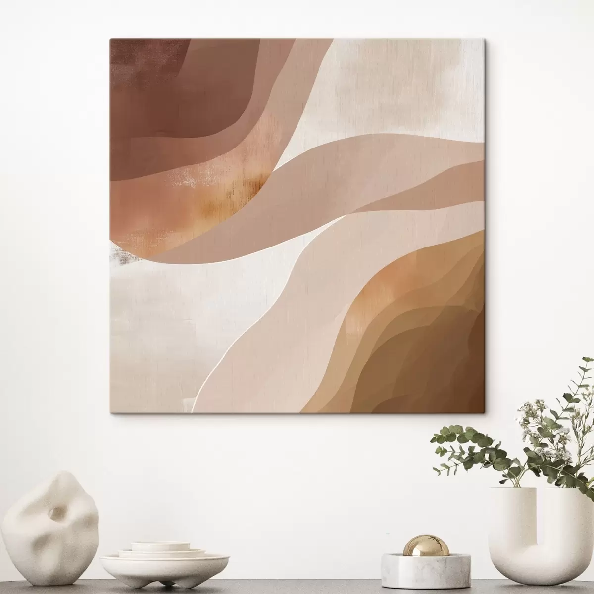 Schilderij Abstracte golvende vormen in een koffiebruin kleurenpalet Art. s48836