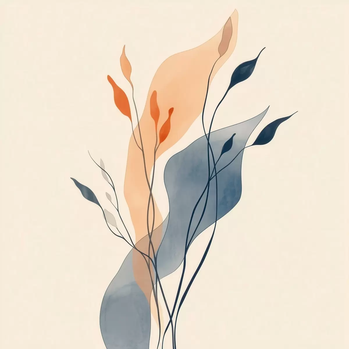 Schilderij Compositie met expressieve plantensilhouetten in de stijl van een kunstillustratie Art. s48838