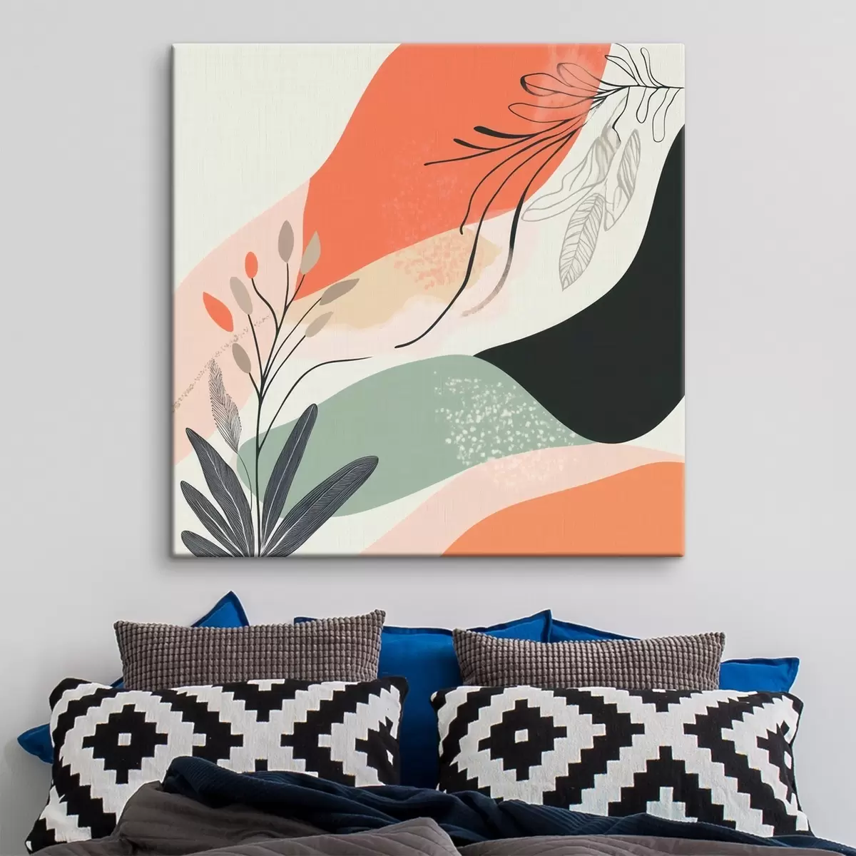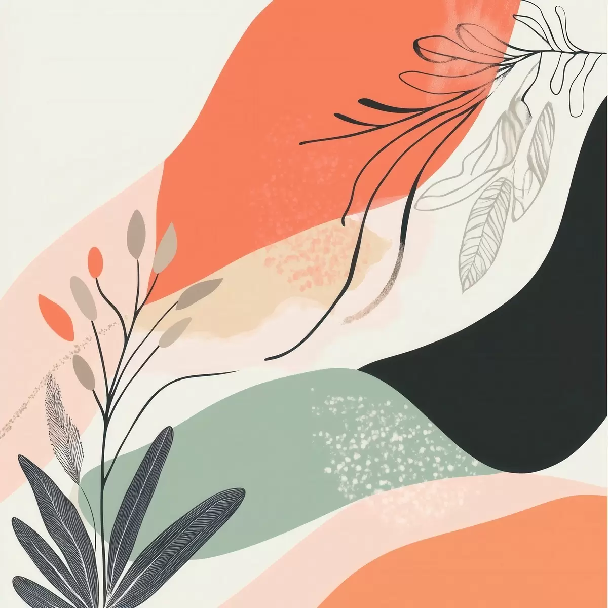 Schilderij Gestileerde plantmotieven tegen een achtergrond van aquarelvlekken Art. s48839