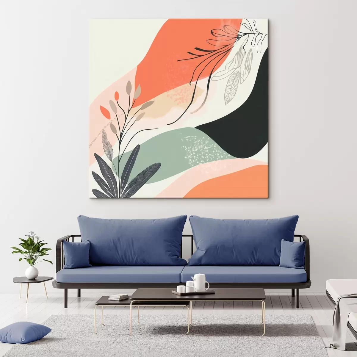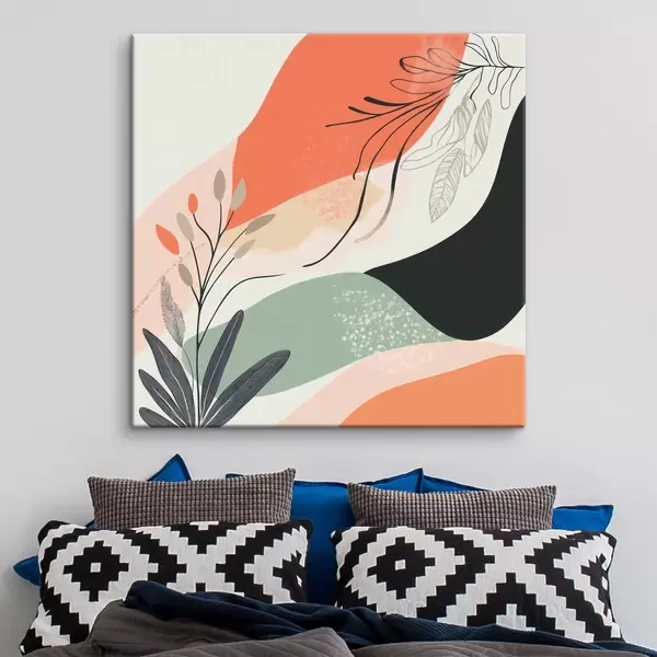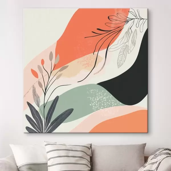 Schilderijen Gestileerde plantmotieven tegen een achtergrond van aquarelvlekken s48839