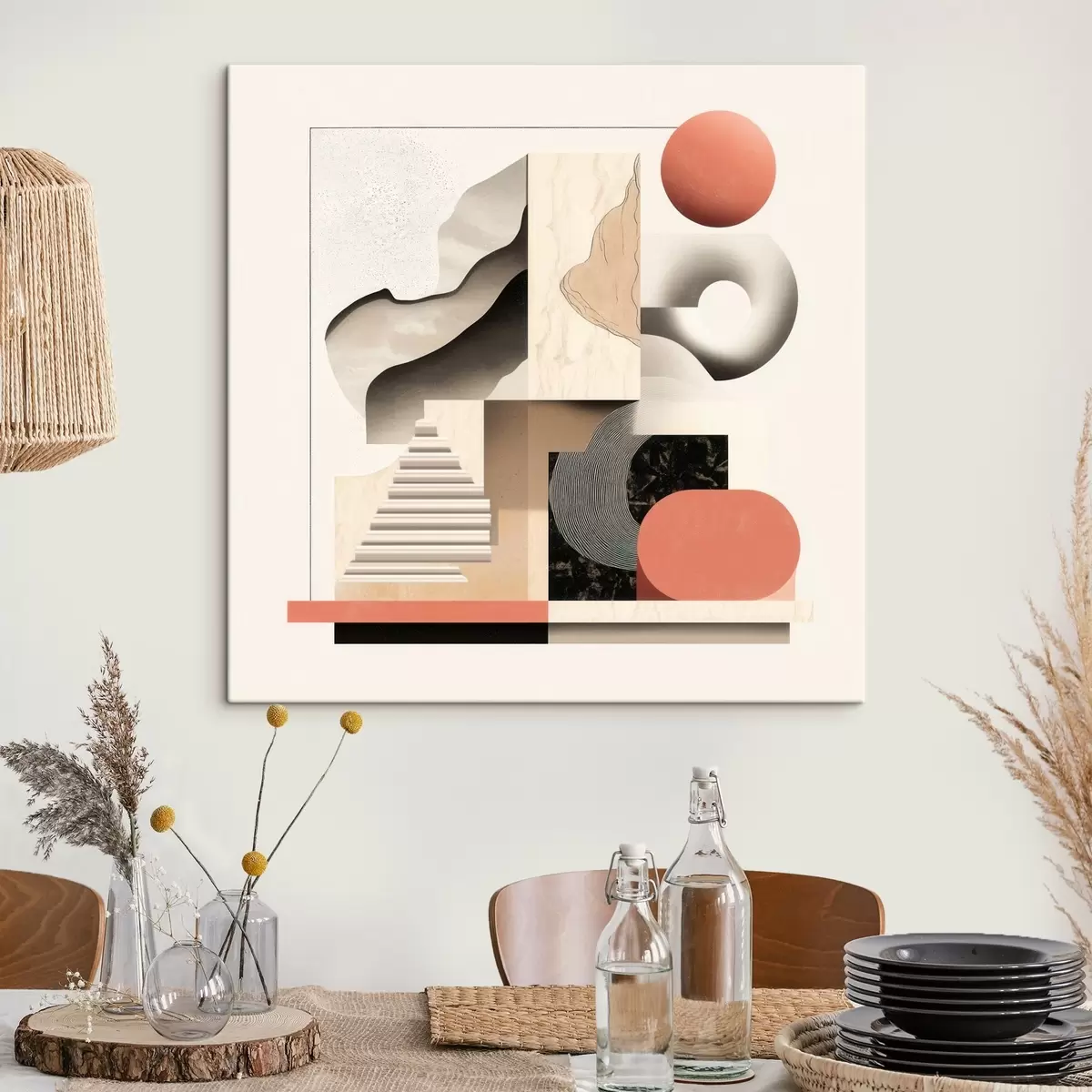 Schilderij Abstracte vormen in een beige-grijze kleurstelling in een eigentijdse schilderstijl Art. s48842