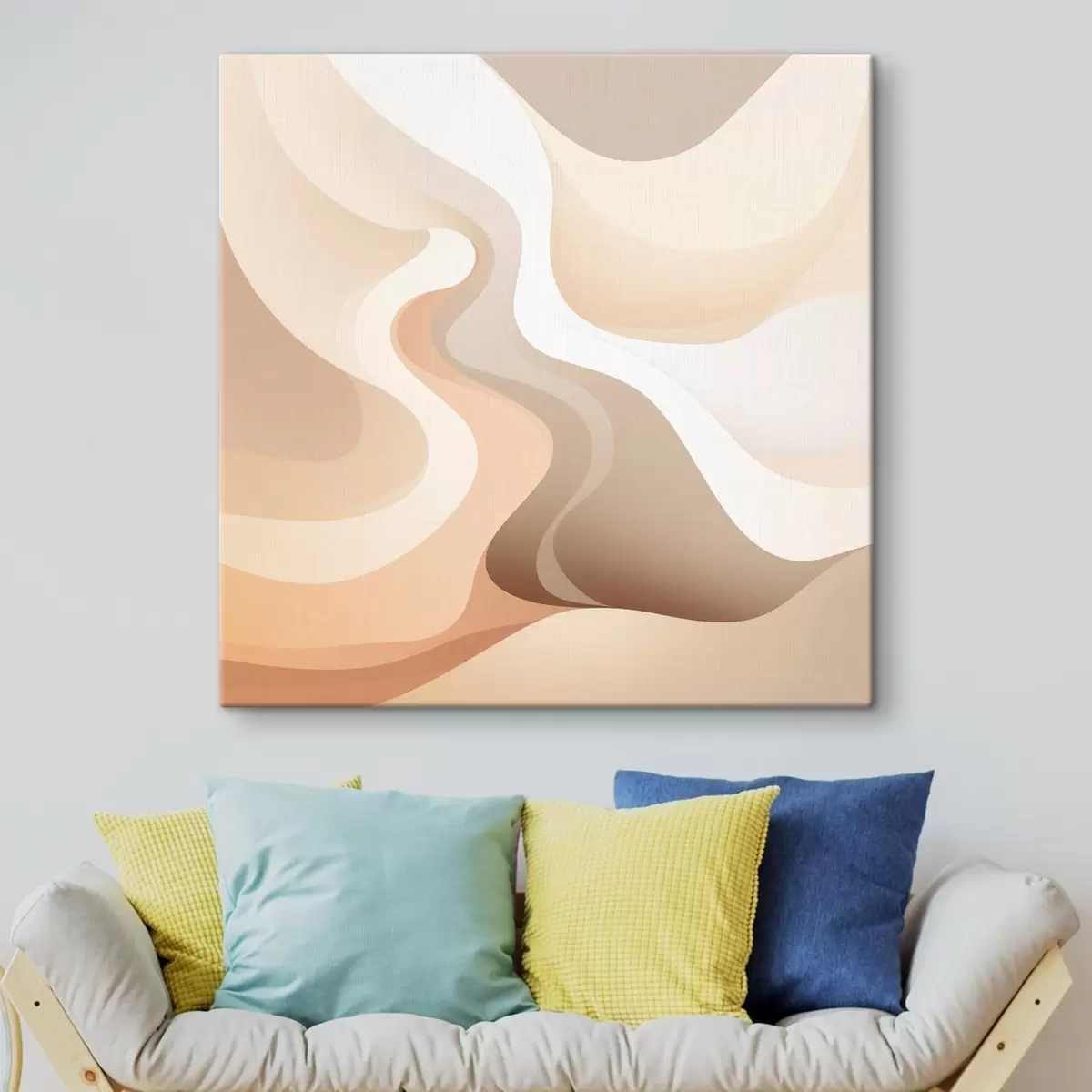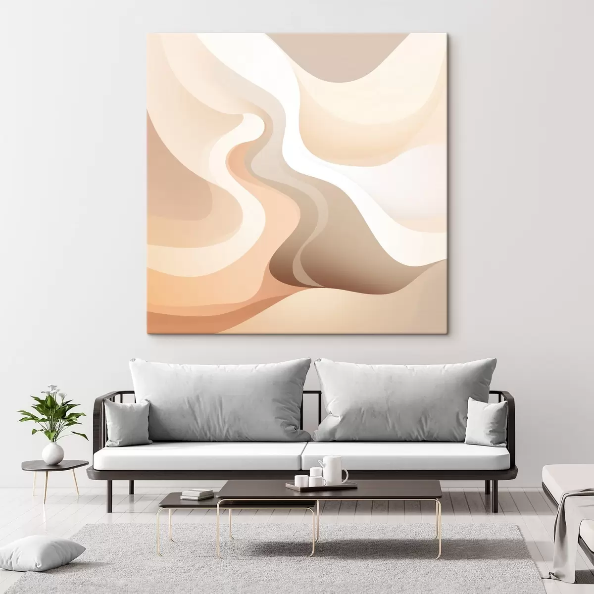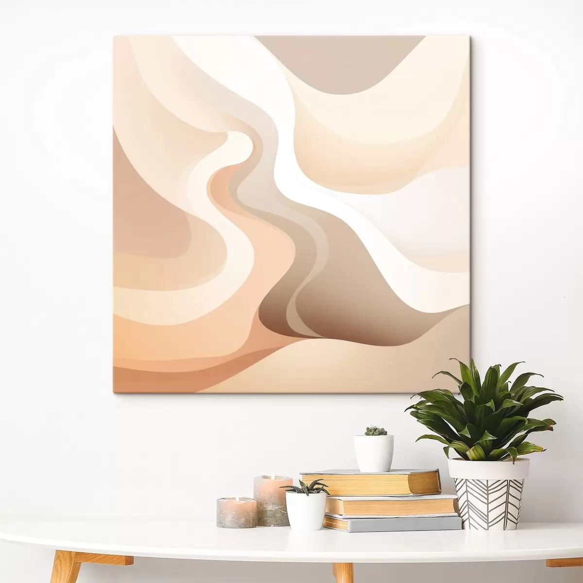 Schilderijen Een harmonie van gebogen vormen en crèmekleurige tinten in de stijl van hedendaagse kunstillustraties s48846