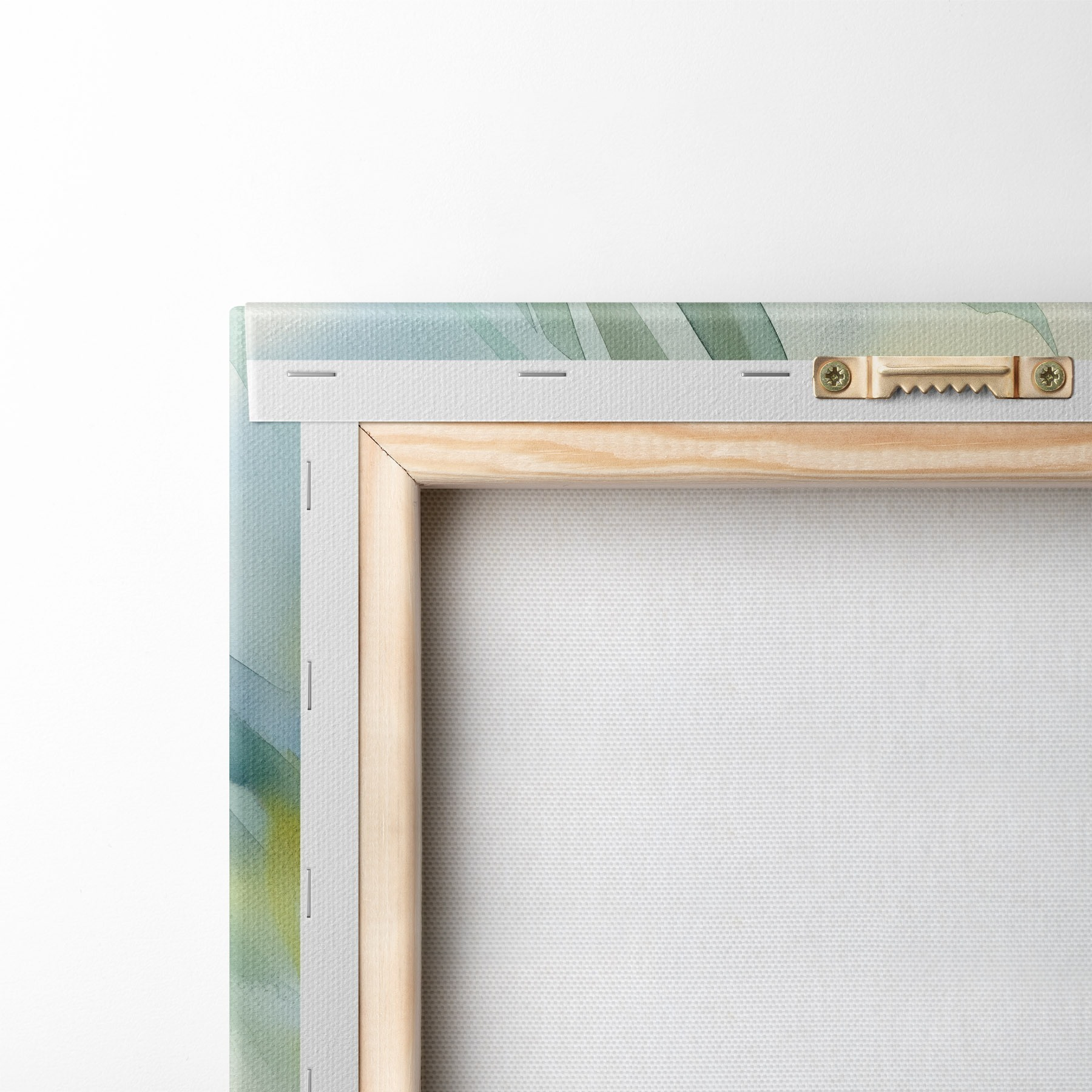 Om het doek op te spannen op spielatten zonder de afbeelding te beschadigen, gebruiken we gespiegeld beeld.