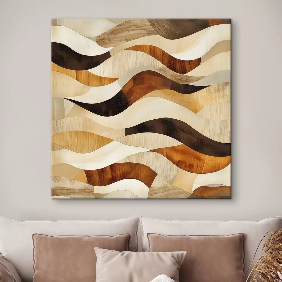 Schilderijen Een esthetiek van organische lijnen en natuurlijke houttinten in de stijl van een artistieke poster s48852