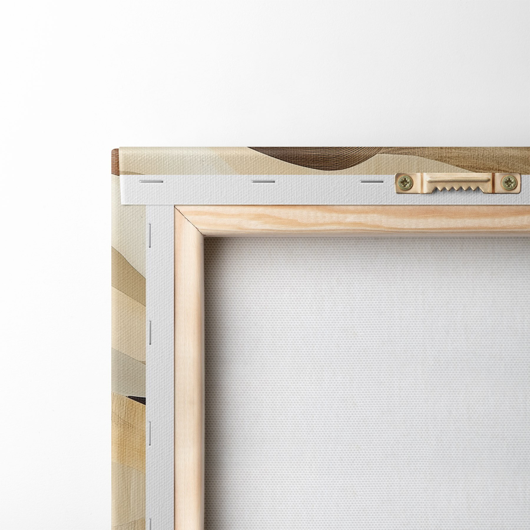 Om het doek op te spannen op spielatten zonder de afbeelding te beschadigen, gebruiken we gespiegeld beeld.
