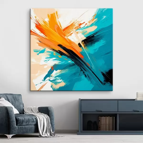 Schilderijen Een levendige voorstelling in een turquoise-terracottakleurig palet, uitgevoerd in een eigentijdse schilderstijl s48855