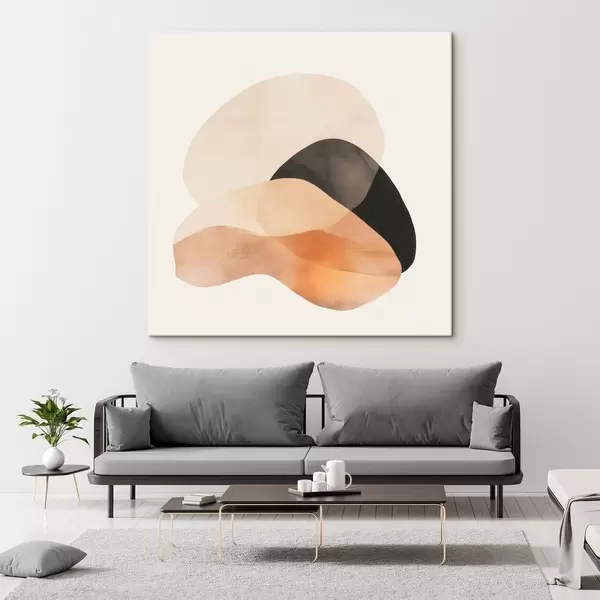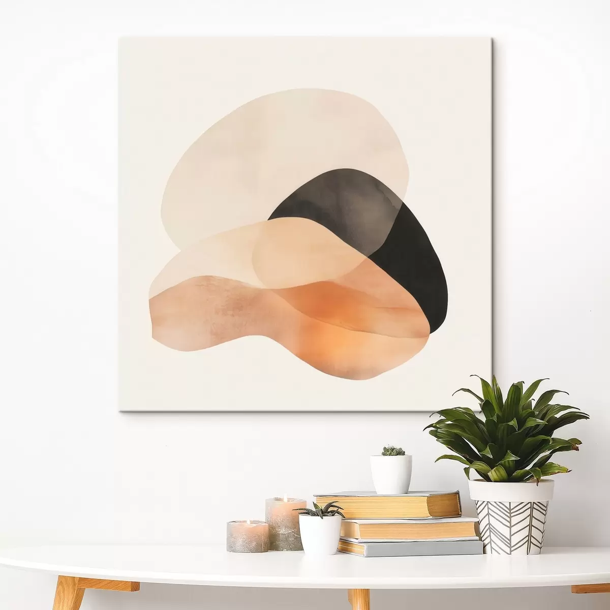 Schilderij Abstracte vormen in een beige-perzikkleurig palet met donkere accenten in minimalistische stijl Art. s48863