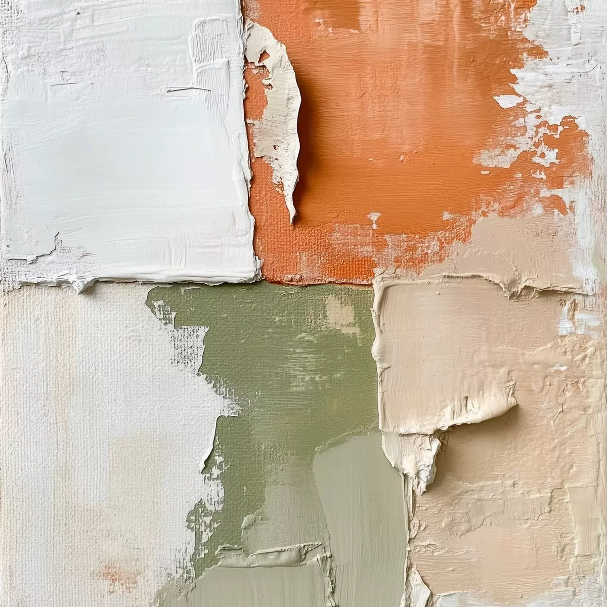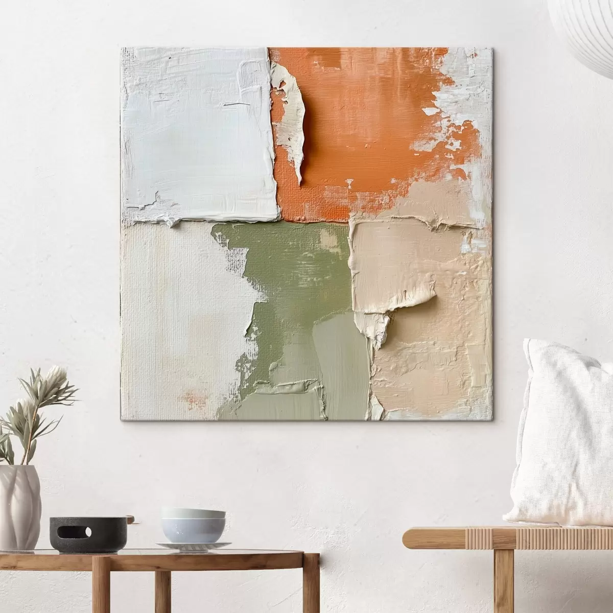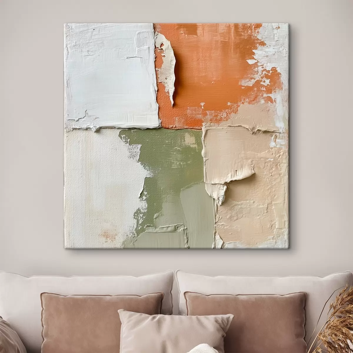 Schilderij Een combinatie van oranje- en olijfgroene tinten in een eigentijdse schilderstijl Art. s48867