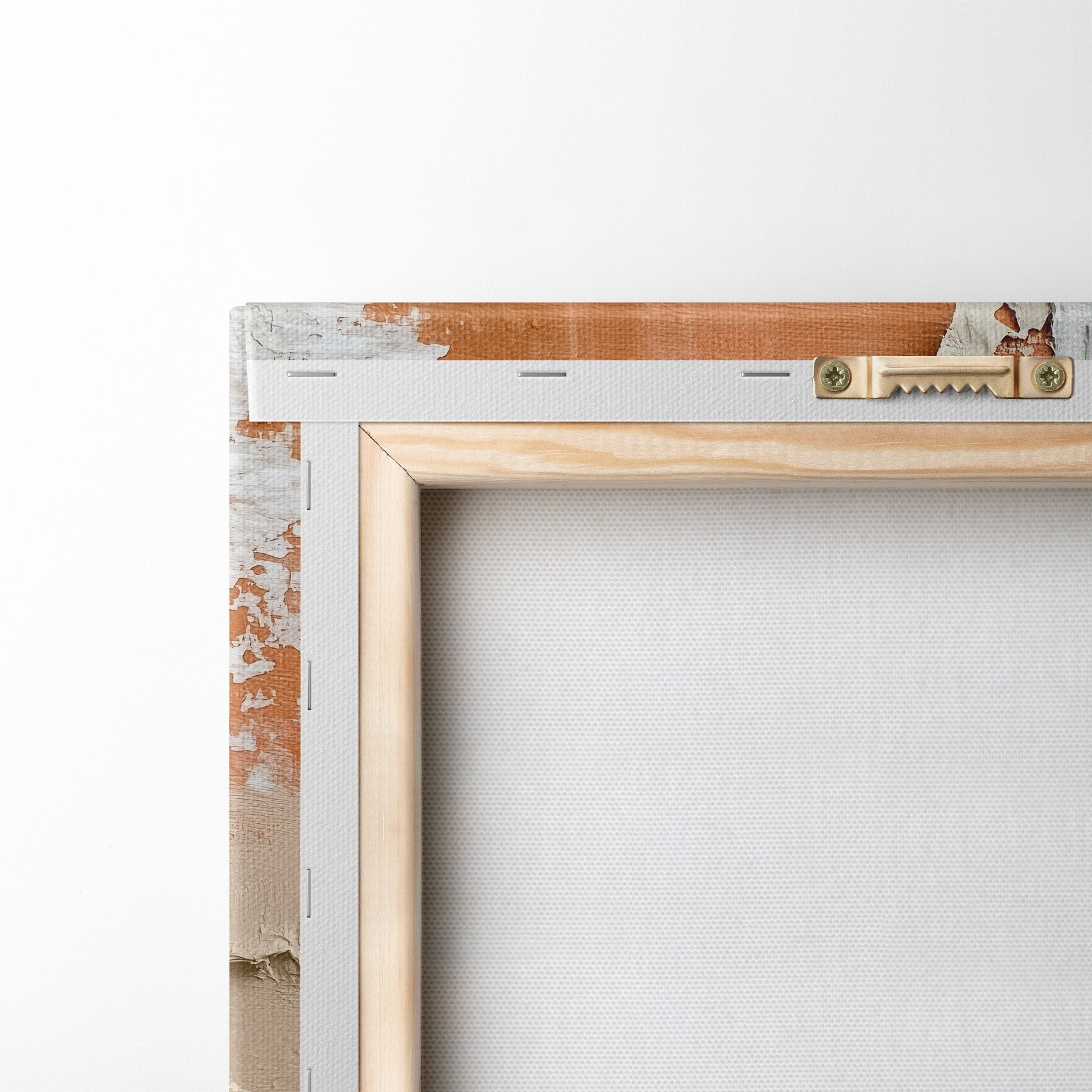 Je kunt het schilderij ophangen aan schroeven. Hiervoor leveren we bevestigingen bij onze foto's, zodat je de foto gemakkelijk kunt ophangen.