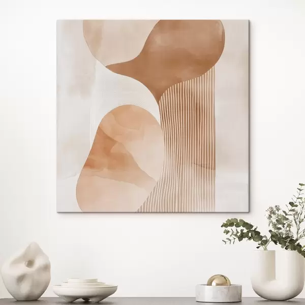 Schilderijen Decoratieve kunst in een warm beige-koraalkleurig palet met een aquareleffect s48870