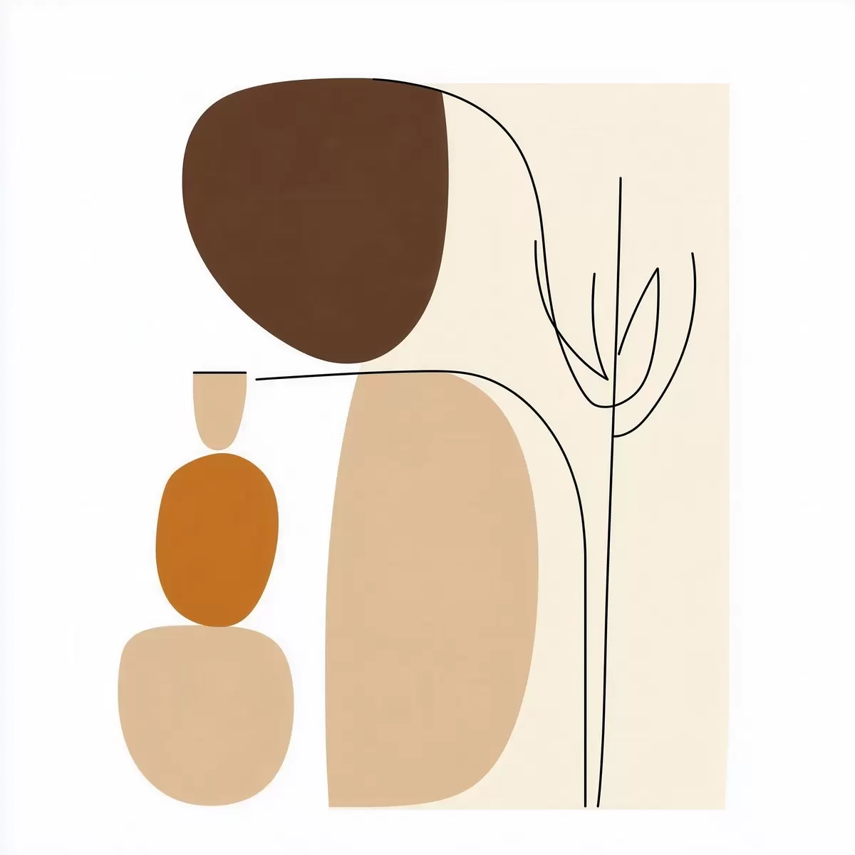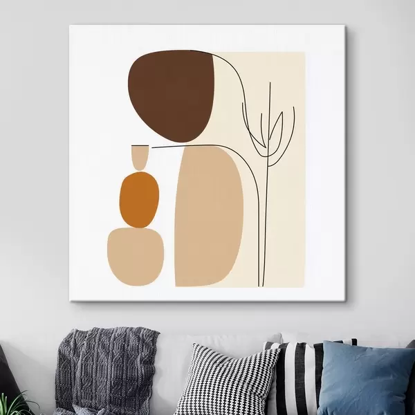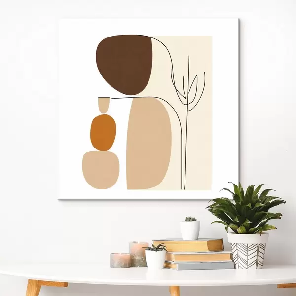 Schilderijen Abstracte compositie met dunne stengels en eenvoudige vormen in minimalistische stijl s48871