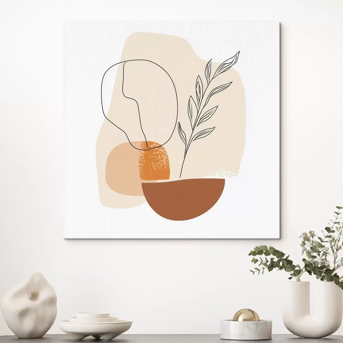 Schilderij Stilleven met grafische accenten en pastelkleurige vormen in een hedendaagse kunststijl Art. s48872