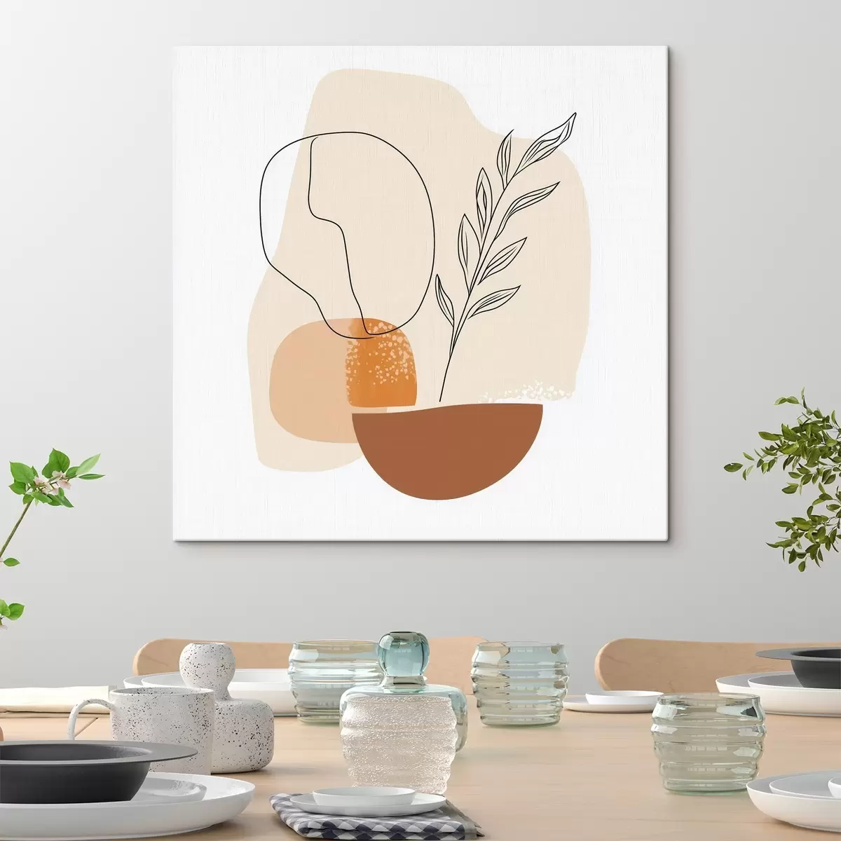 Schilderijen Stilleven met grafische accenten en pastelkleurige vormen in een hedendaagse kunststijl s48872
