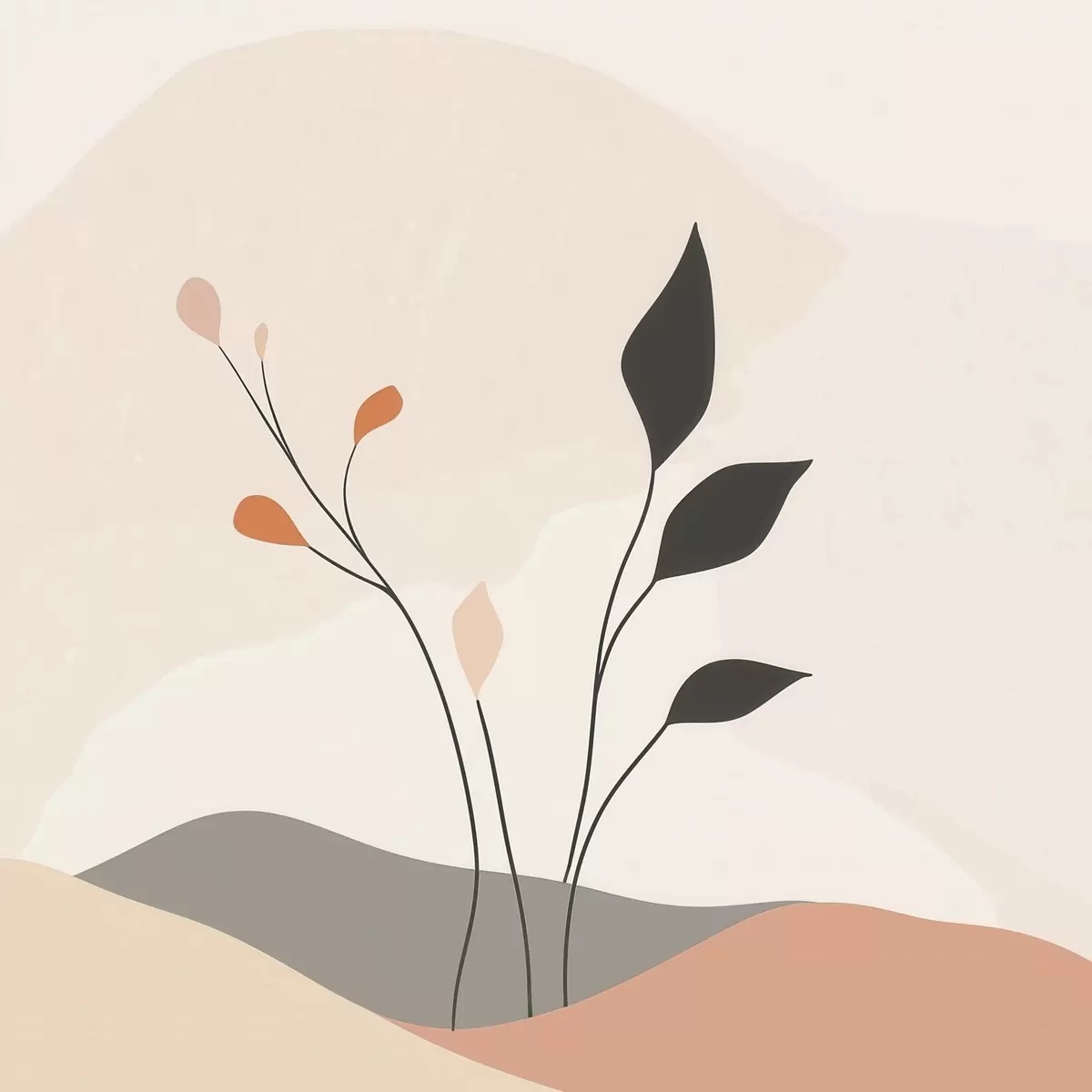 Schilderijen Een laconieke scène met een plantenthema en organische vormen in een hedendaagse kunststijl s48874