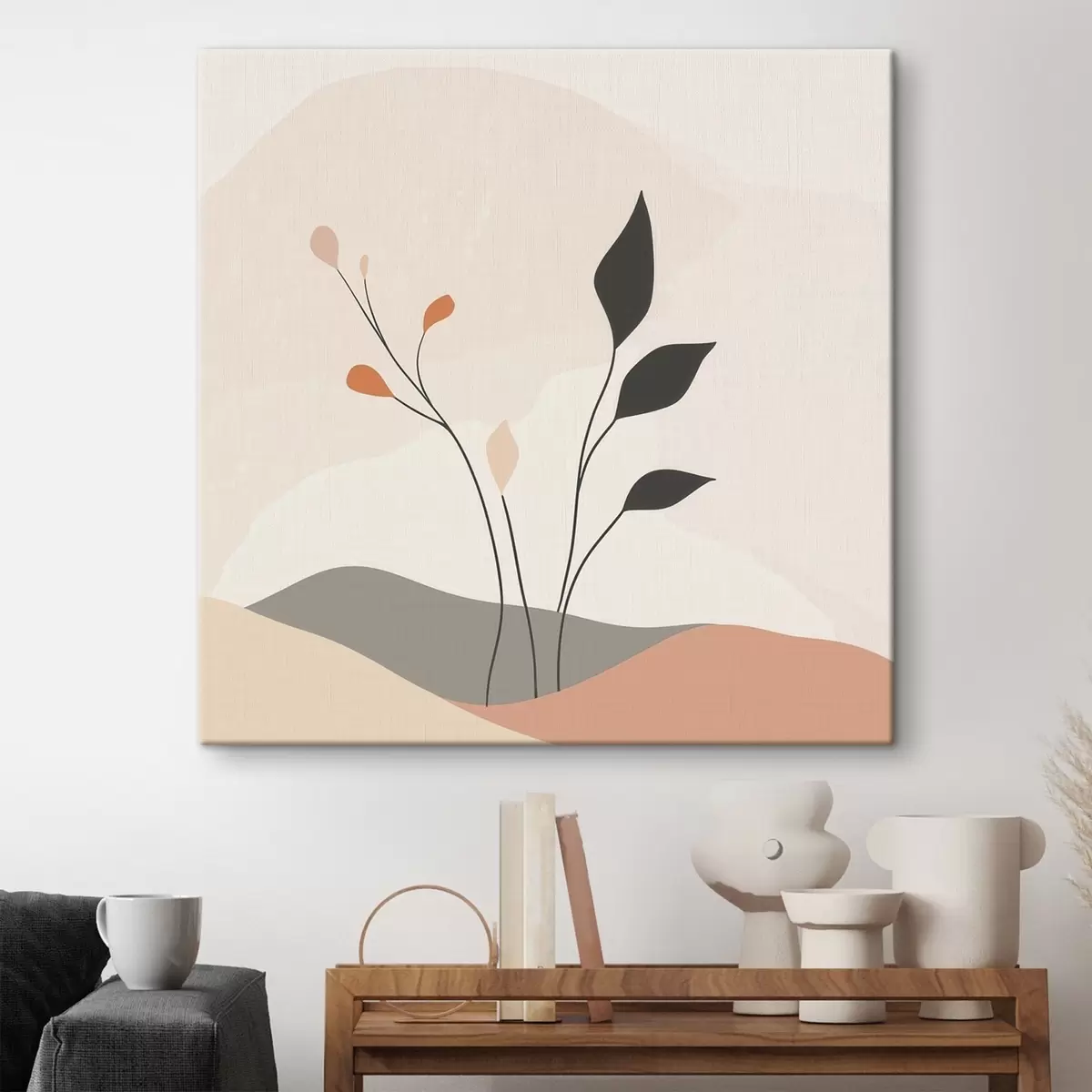 Schilderij Een laconieke scène met een plantenthema en organische vormen in een hedendaagse kunststijl Art. s48874