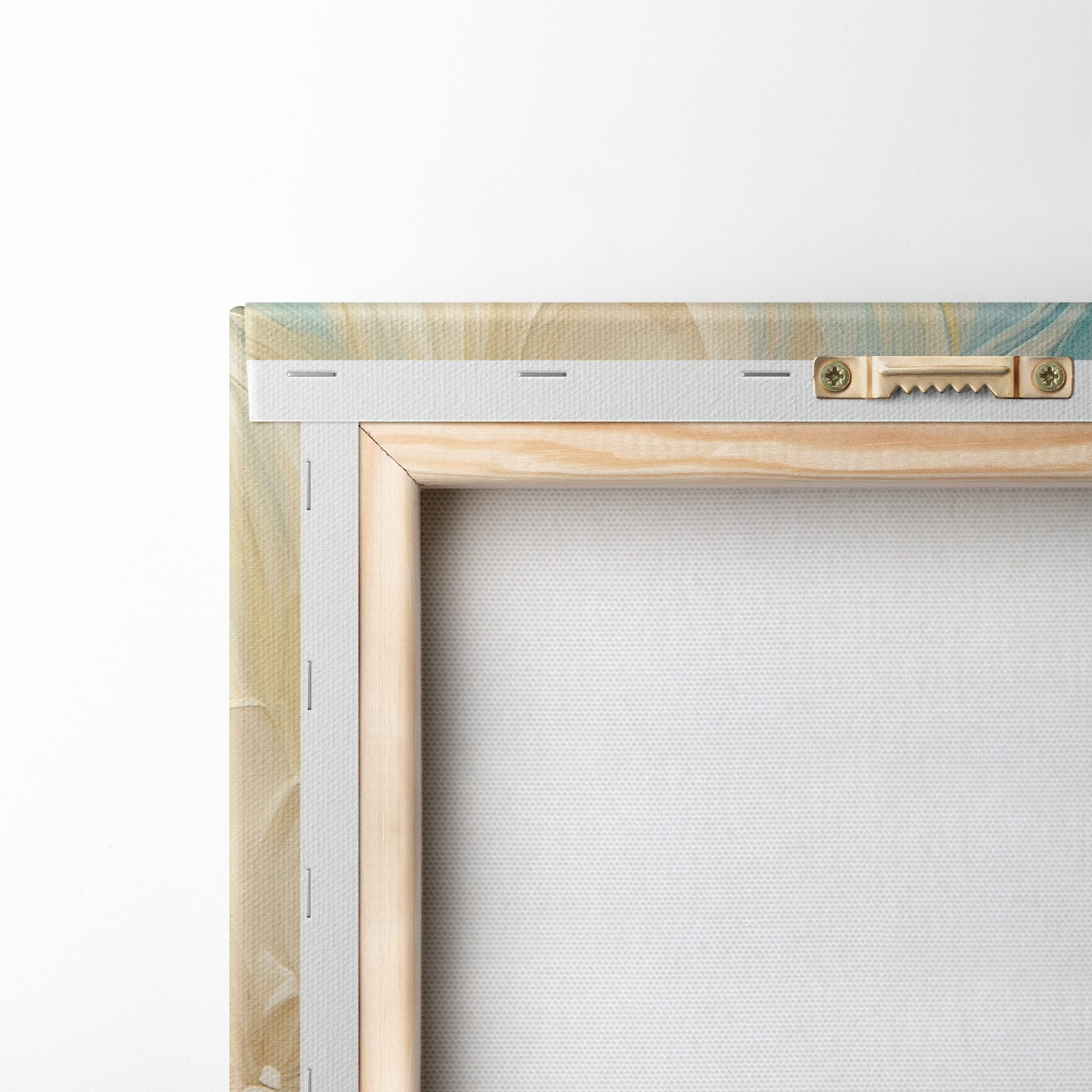 Om het doek op te spannen op spielatten zonder de afbeelding te beschadigen, gebruiken we gespiegeld beeld.