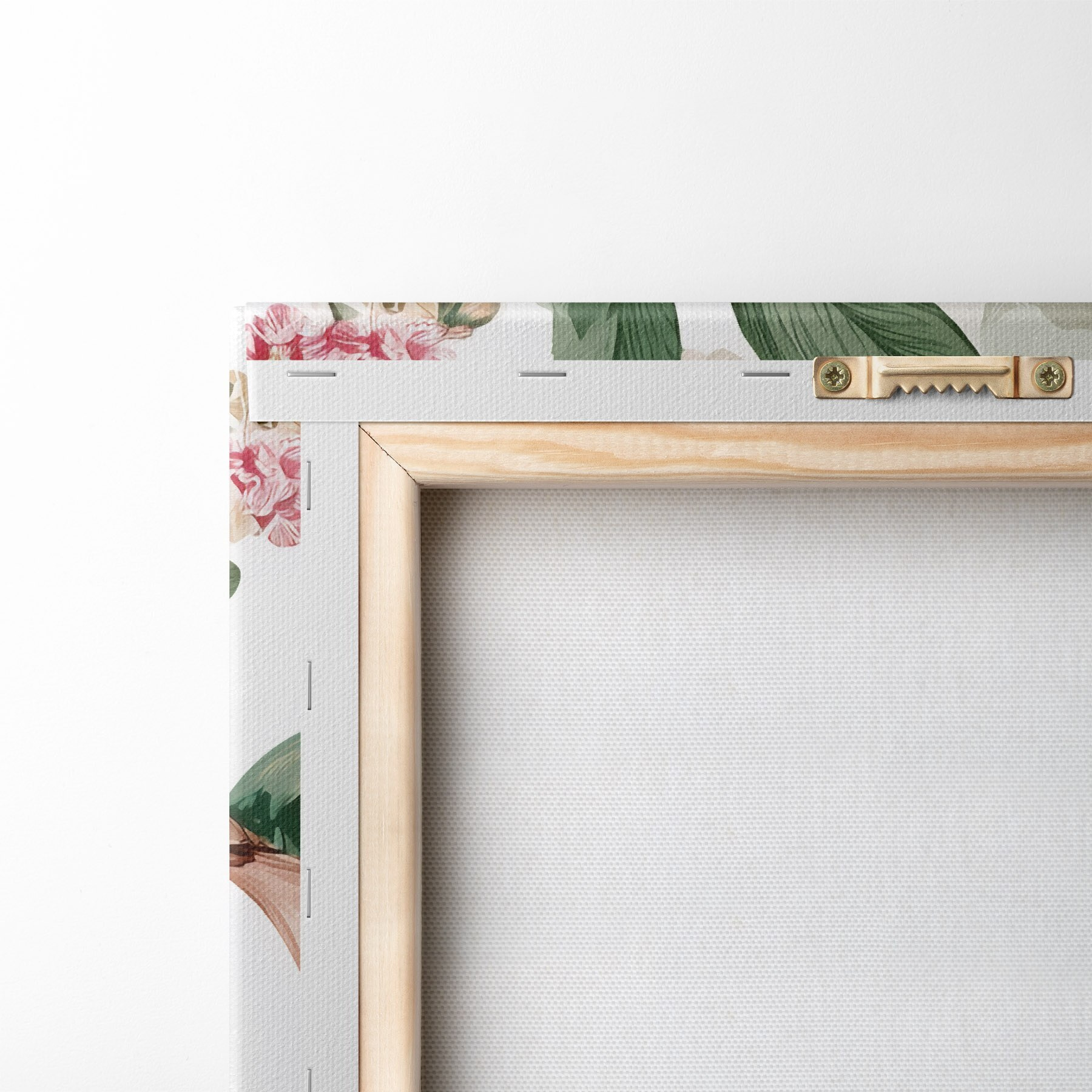 Om het doek op te spannen op spielatten zonder de afbeelding te beschadigen, gebruiken we gespiegeld beeld.