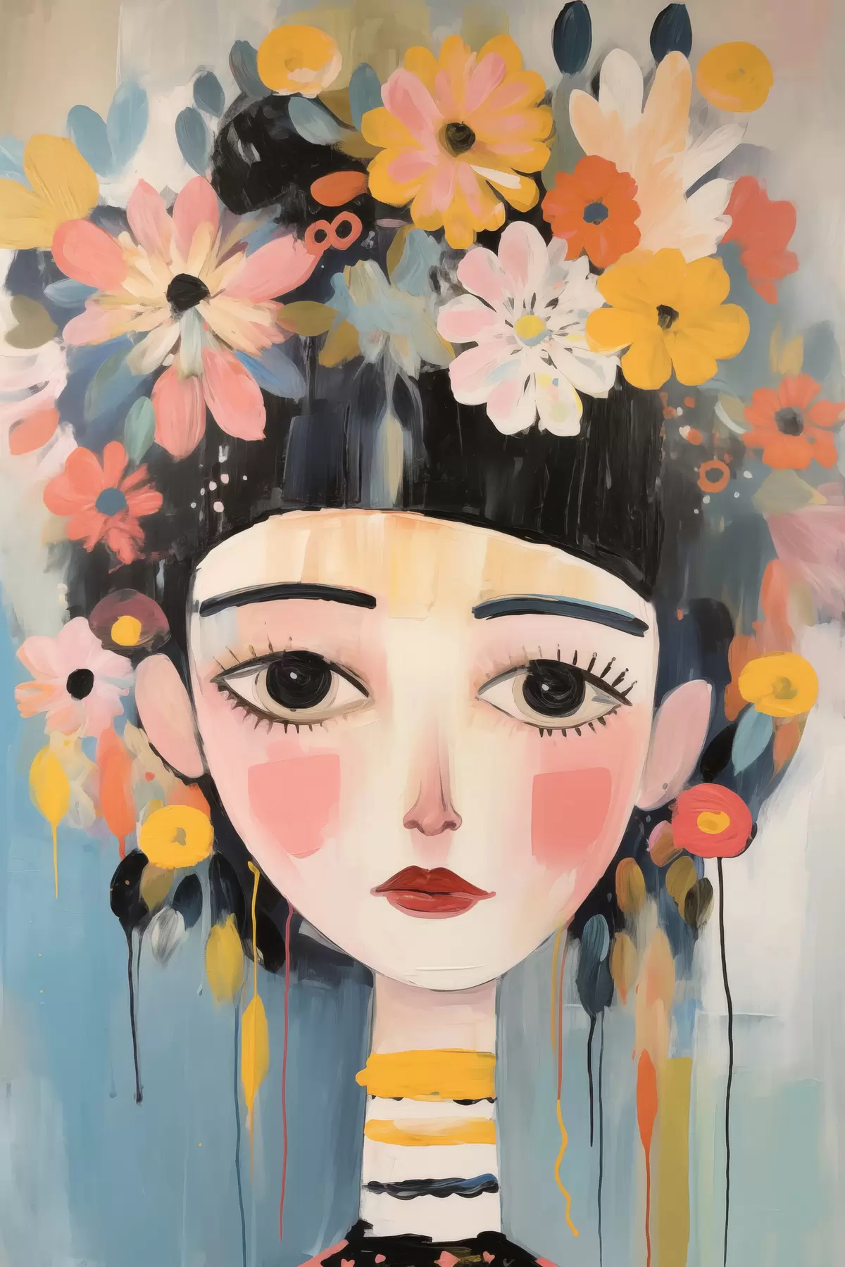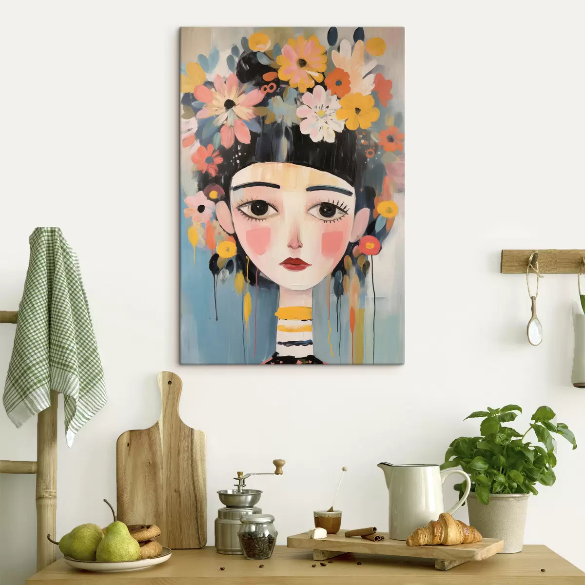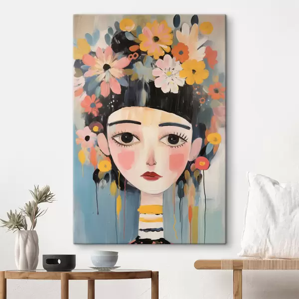 Schilderij Portret van een vrouw met bloemen in haar haar, in abstracte stijl Art. s48935
