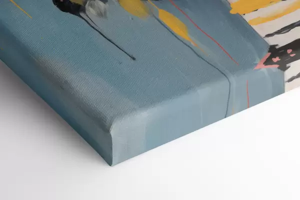 Het schilderij kan direct na ontvangst worden opgehangen. Het schilderij wordt opgespannen op een 2 cm breed houten spieraam.