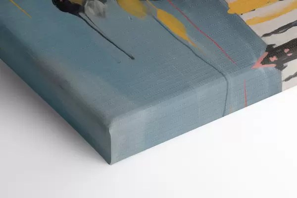 Het schilderij kan direct na ontvangst worden opgehangen. Het schilderij wordt opgespannen op een 2 cm breed houten spieraam.
