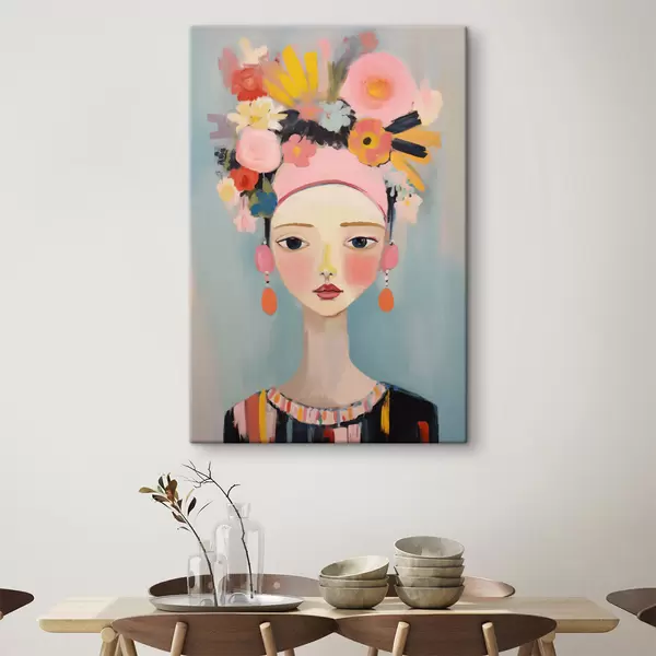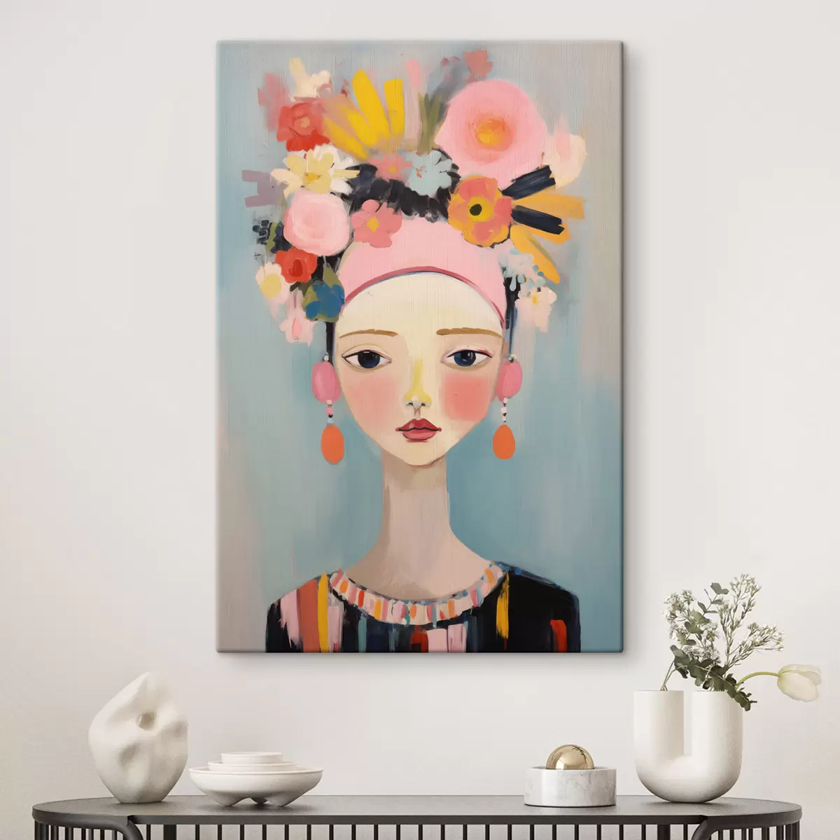 Schilderij Portret van een vrouw met bloemen in haar haar, in abstracte stijl Art. s48936