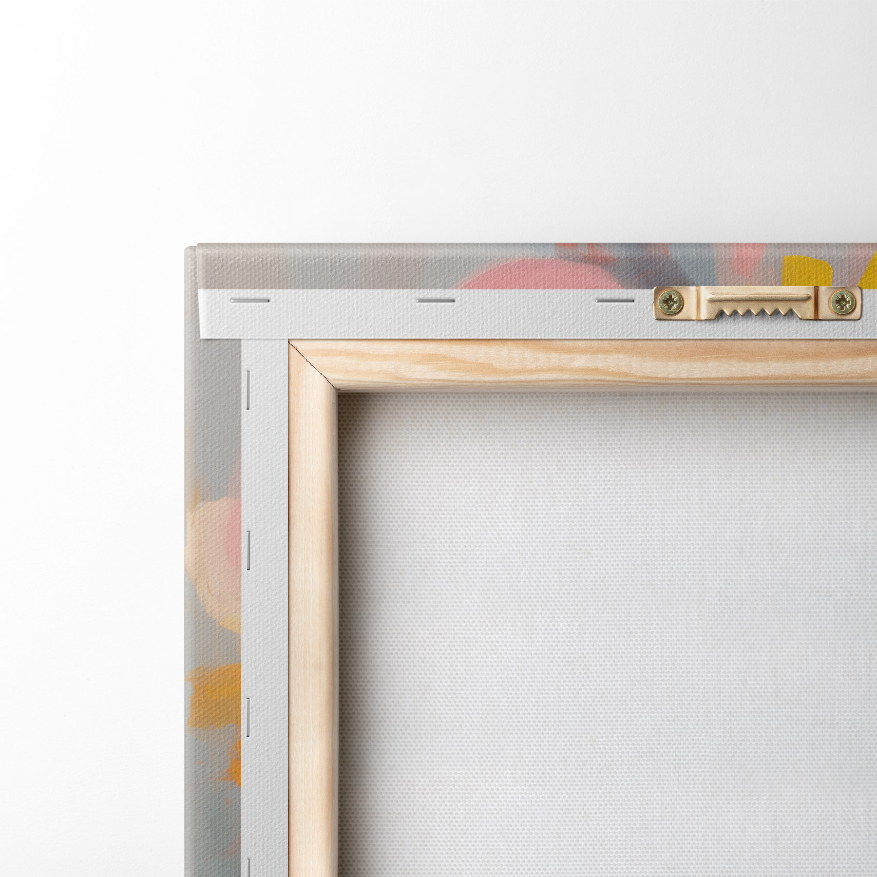 Het schilderij kan direct na ontvangst worden opgehangen. Het schilderij wordt opgespannen op een 2 cm breed houten spieraam.