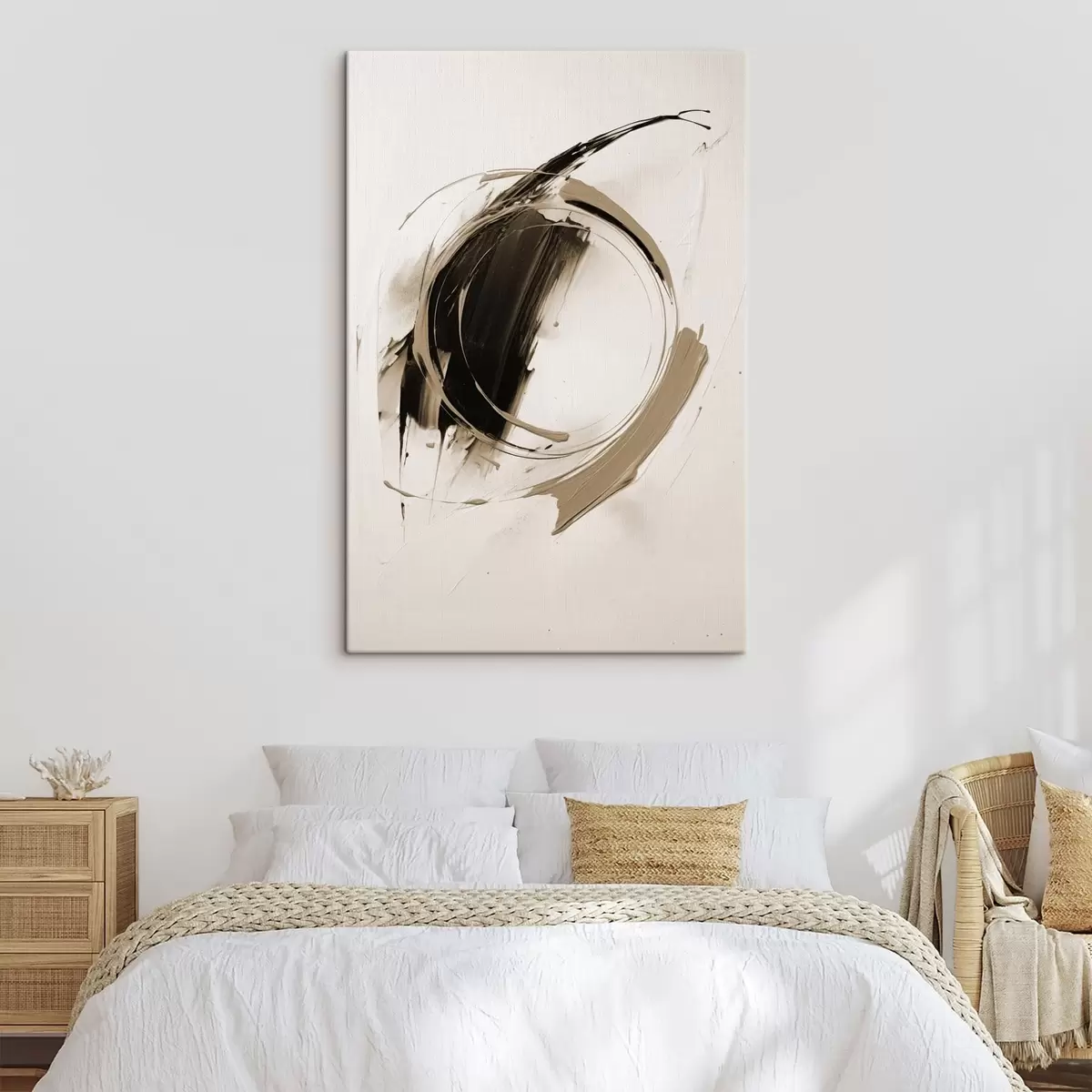 Het schilderij kan direct na ontvangst worden opgehangen. Het schilderij wordt opgespannen op een 2 cm breed houten spieraam.