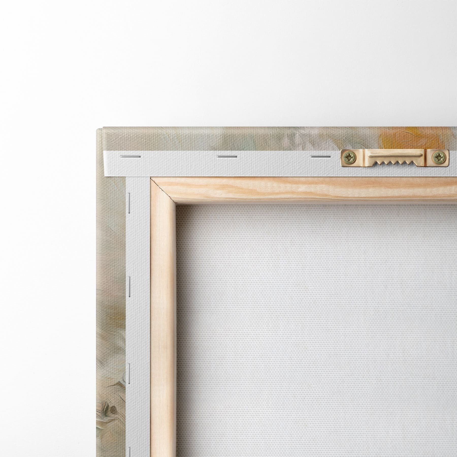 Om het doek op te spannen op spielatten zonder de afbeelding te beschadigen, gebruiken we gespiegeld beeld.