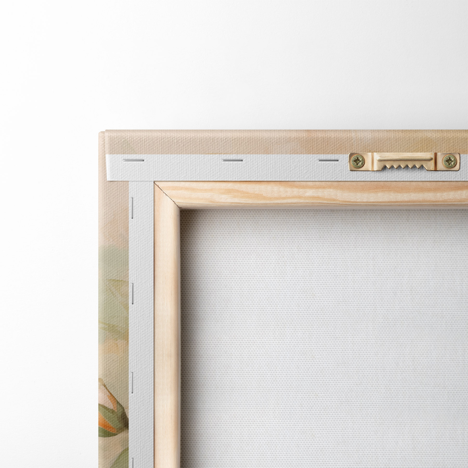 Om het doek op te spannen op spielatten zonder de afbeelding te beschadigen, gebruiken we gespiegeld beeld.