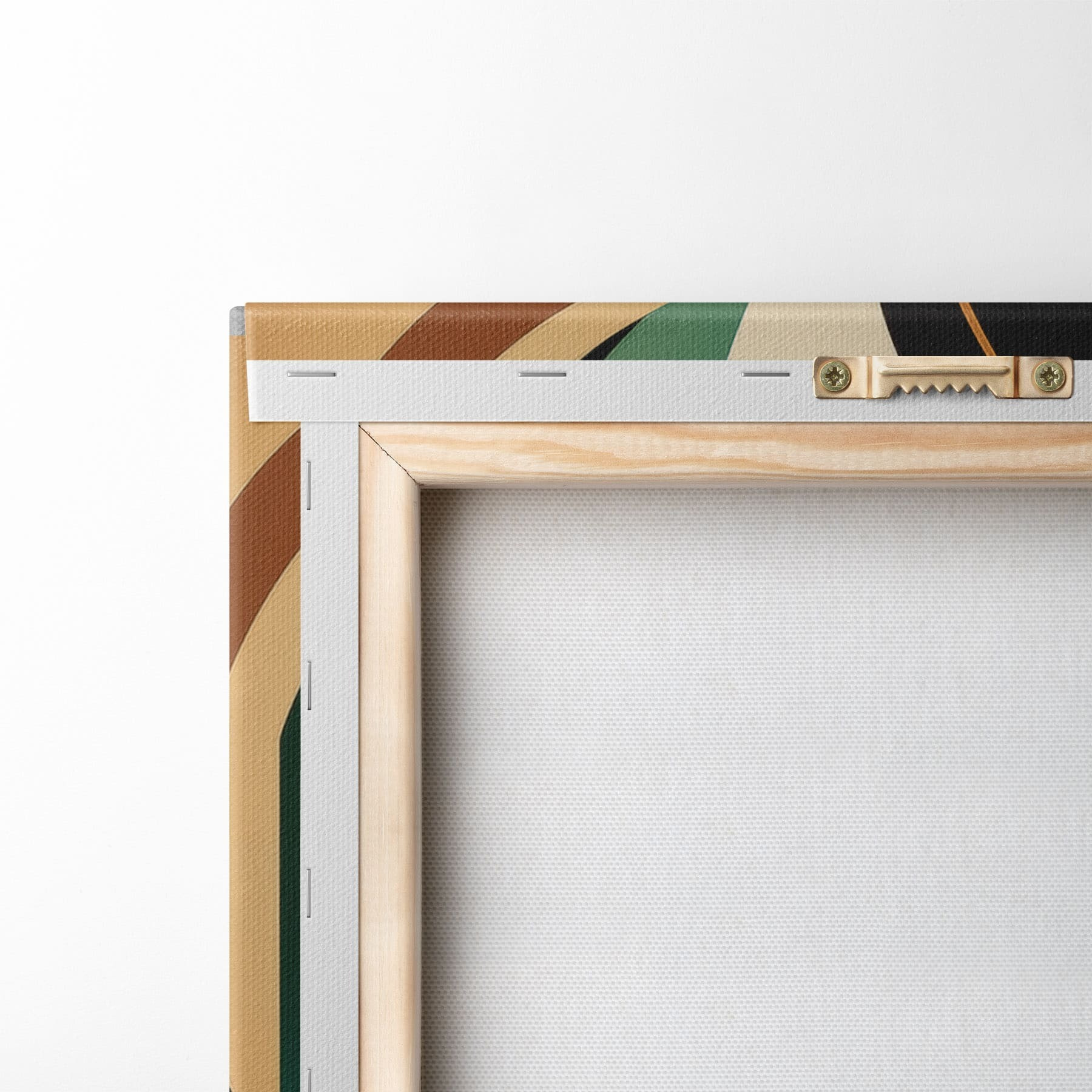 Je kunt het schilderij ophangen aan schroeven. Hiervoor leveren we bevestigingen bij onze foto's, zodat je de foto gemakkelijk kunt ophangen.