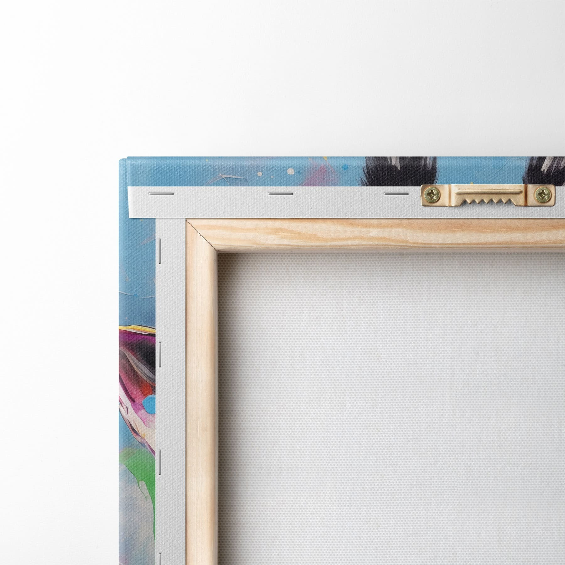 Om het doek op te spannen op spielatten zonder de afbeelding te beschadigen, gebruiken we gespiegeld beeld.