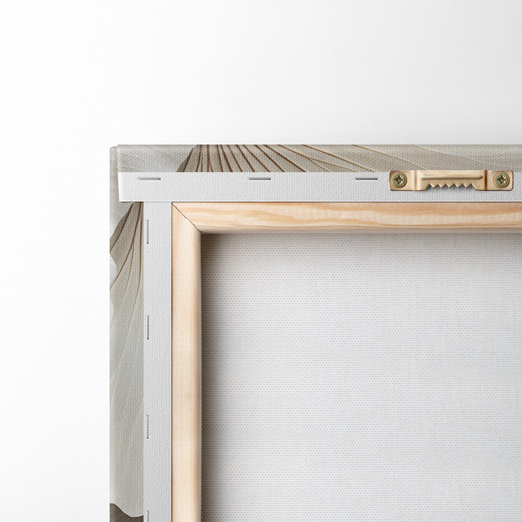 Om het doek op te spannen op spielatten zonder de afbeelding te beschadigen, gebruiken we gespiegeld beeld.