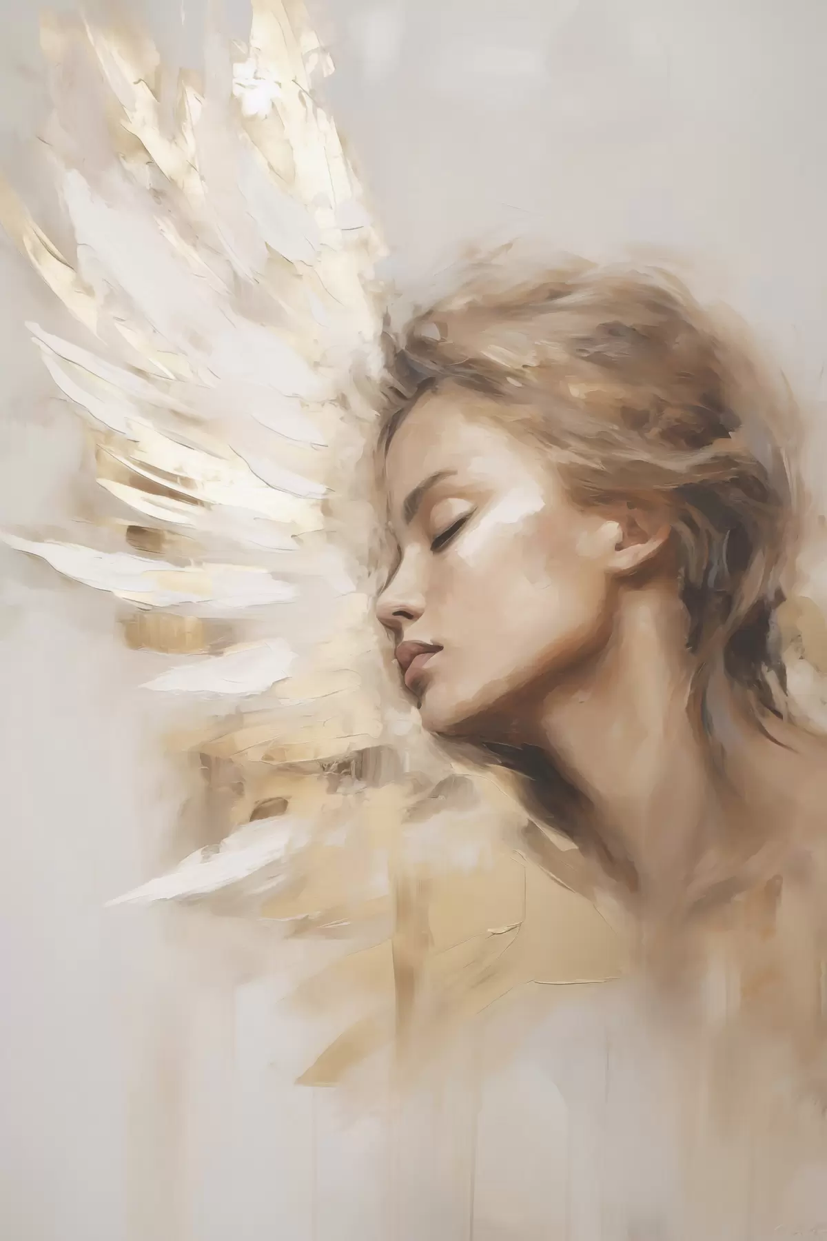 Schilderij Portret van een meisje met een engelenvleugel Art. s48979
