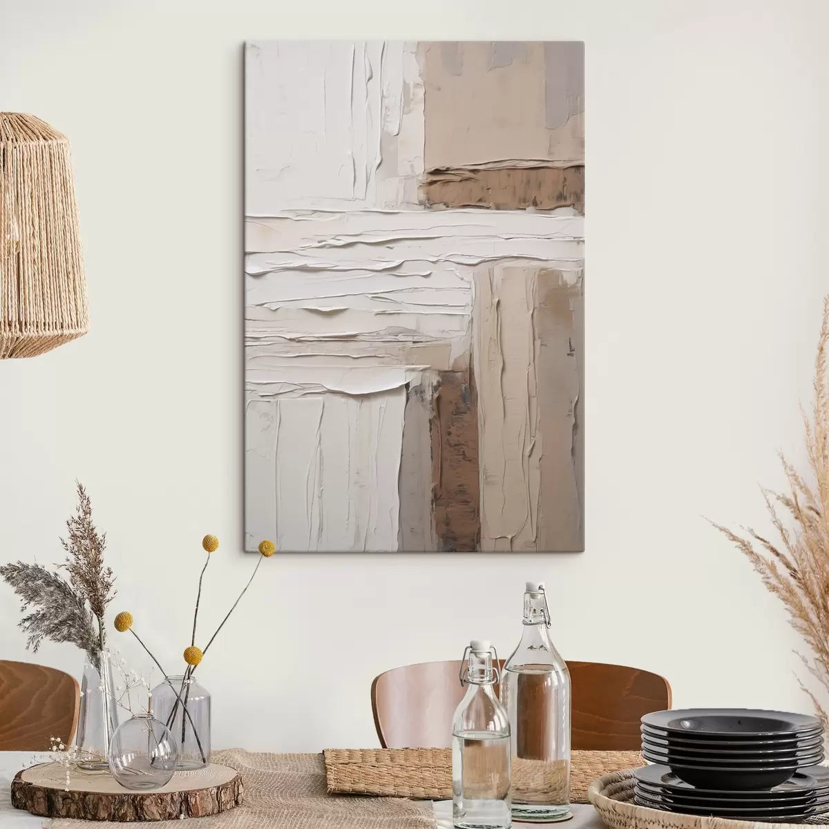 Er zijn drie soorten materiaal te bestellen: Economic Canvas - een dicht en duurzaam materiaal voor digitaal printen, identiek aan schildersdoek, waterdicht oppervlak, realistische weergave van details, materiaal met gemiddelde korrel. Premium Canvas - de textuur lijkt op die van schildersdoek (verweven kleine draden). Zachte, gedetailleerde reproductie van de afbeelding op een mat oppervlak. Eco-Premium - hoogwaardige 100% katoenen stof. Dankzij de natuurlijke katoenvezels is het materiaal duurzaam en slijtvast. Uitstekende kleurweergave en detail.