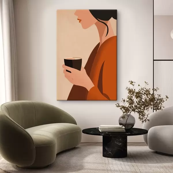 Schilderij Vrouw met kopje – Minimal Art. s49019