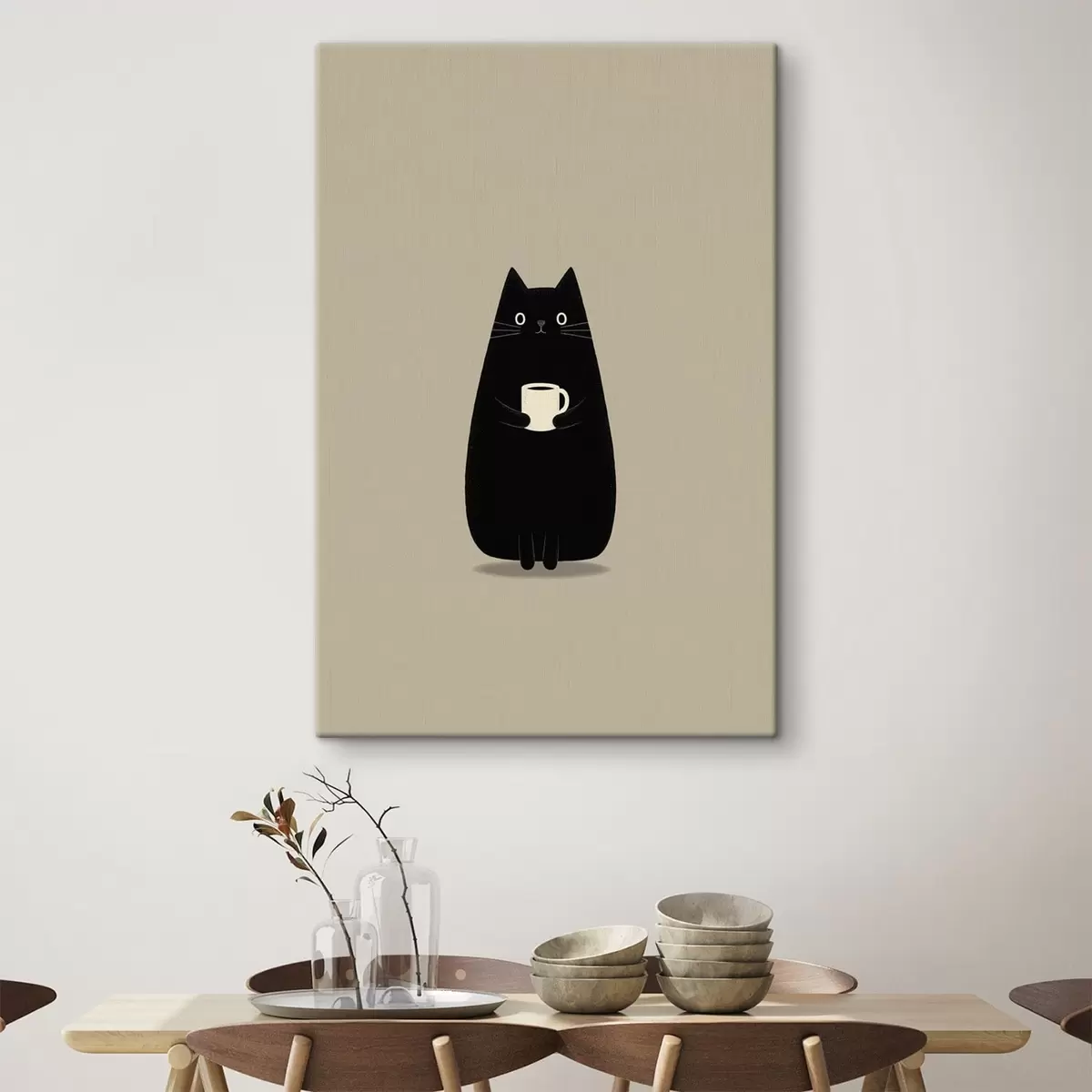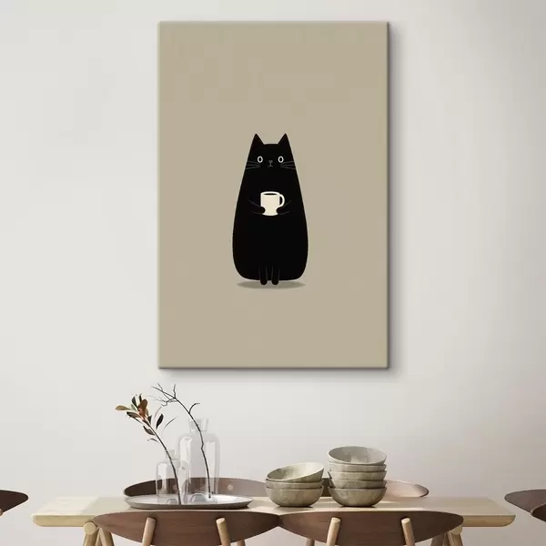 Schilderij Zwarte kat met een kopje Art. s49030