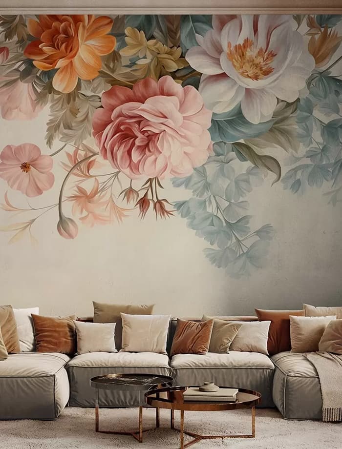 Muurschildering Boho stijl bloemen