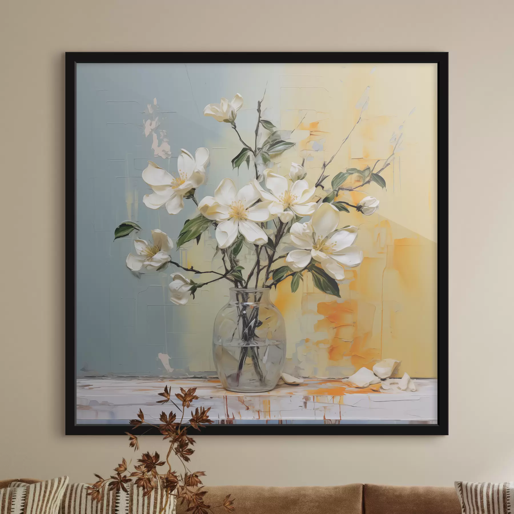 Artistiek canvas met bloemmotieven in minimalistische stijl